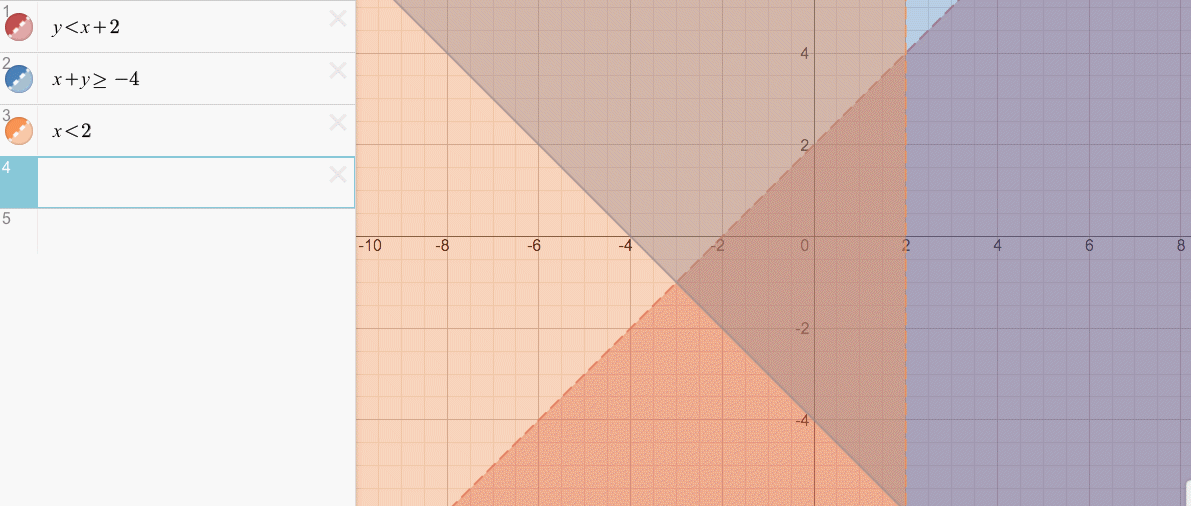 Two other features that I like are the use of sliders to animate graphs and the side-by-side displays of graphs and equations (or inequalities in this case), which you can see in this zoomed-out shot:
