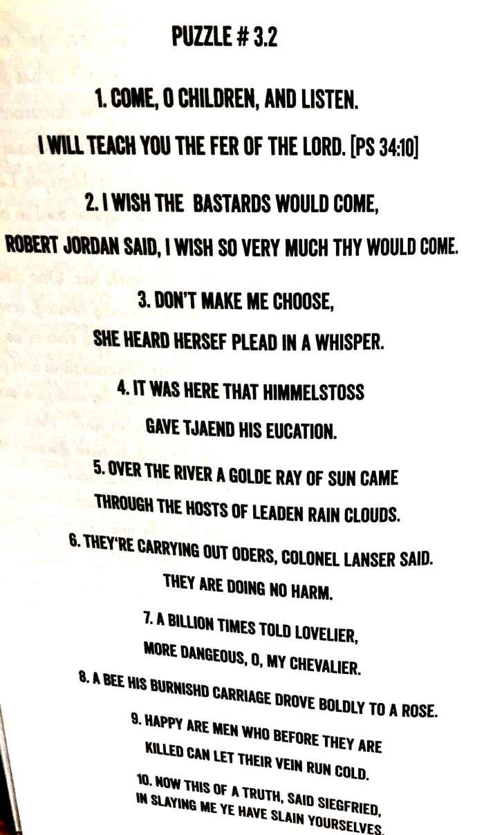 It was still worth reading, but barely so. And you asked for an example of one of the puzzles, so here you are. Good luck!