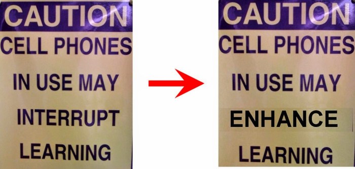 You may wonder what the benefits of having a phone in school could possibly be. Aside from the ever-increasing anxiety of parents who have to get in touch with their kids right now —right now, like immediately, like right away — and the corresponding need of kids to get in touch with parents in case of real or perceived emergency, there are also legitimate academic uses. For example: