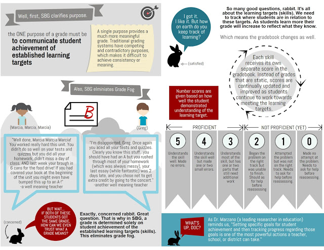 There are a lot of descriptions of standards-based grading floating around. I could quote or link to any of them, but I’m currently liking this three-page infographic from Sarah last-name-unspecified New Jersey Math Teacher (SNLUNJMT for short), who summarizes it all in one place. I’ll pause now so you can read it carefully and digest it slowly: