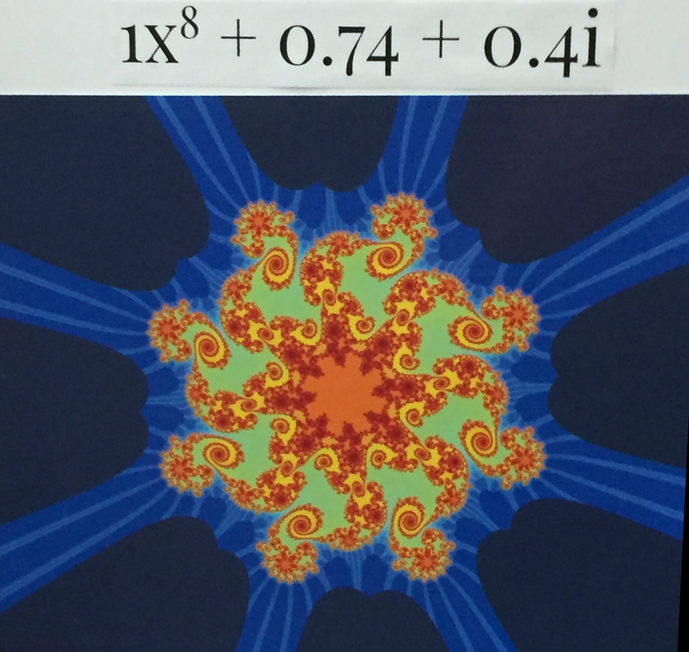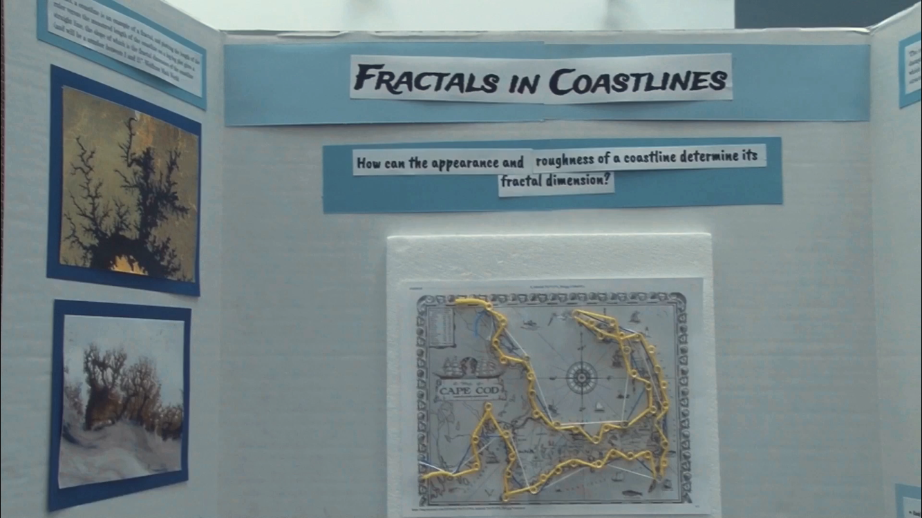 You may be wondering about that peculiar squiggly wire next to a radio (Figure 6). That project (not from my class) was part of a project done by three juniors who took the initiative to get in touch with Dr. Nathan Cohen, who invented the fractal antenna and founded Fractal Antenna Systems. Dr. Cohen generously showed them around his company and explained why fractal antennas are powerful and important. Other projects ranged from fractals in music (Figure 10) to coding computer programs to create original fractals (Figure 2) to explanations of fractals found in nature (Figures 1, 3, 5, 9, and 11).