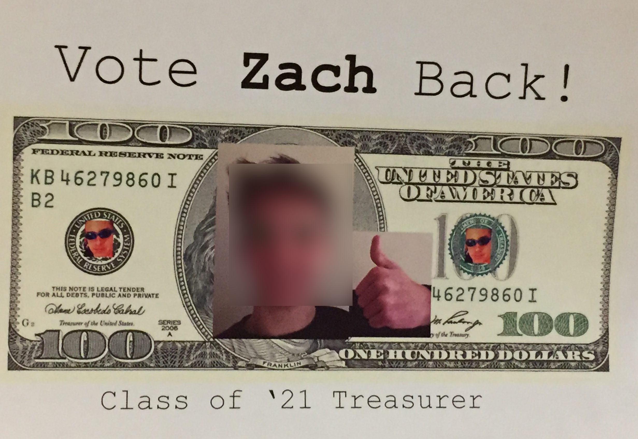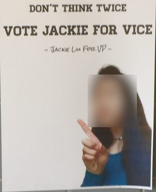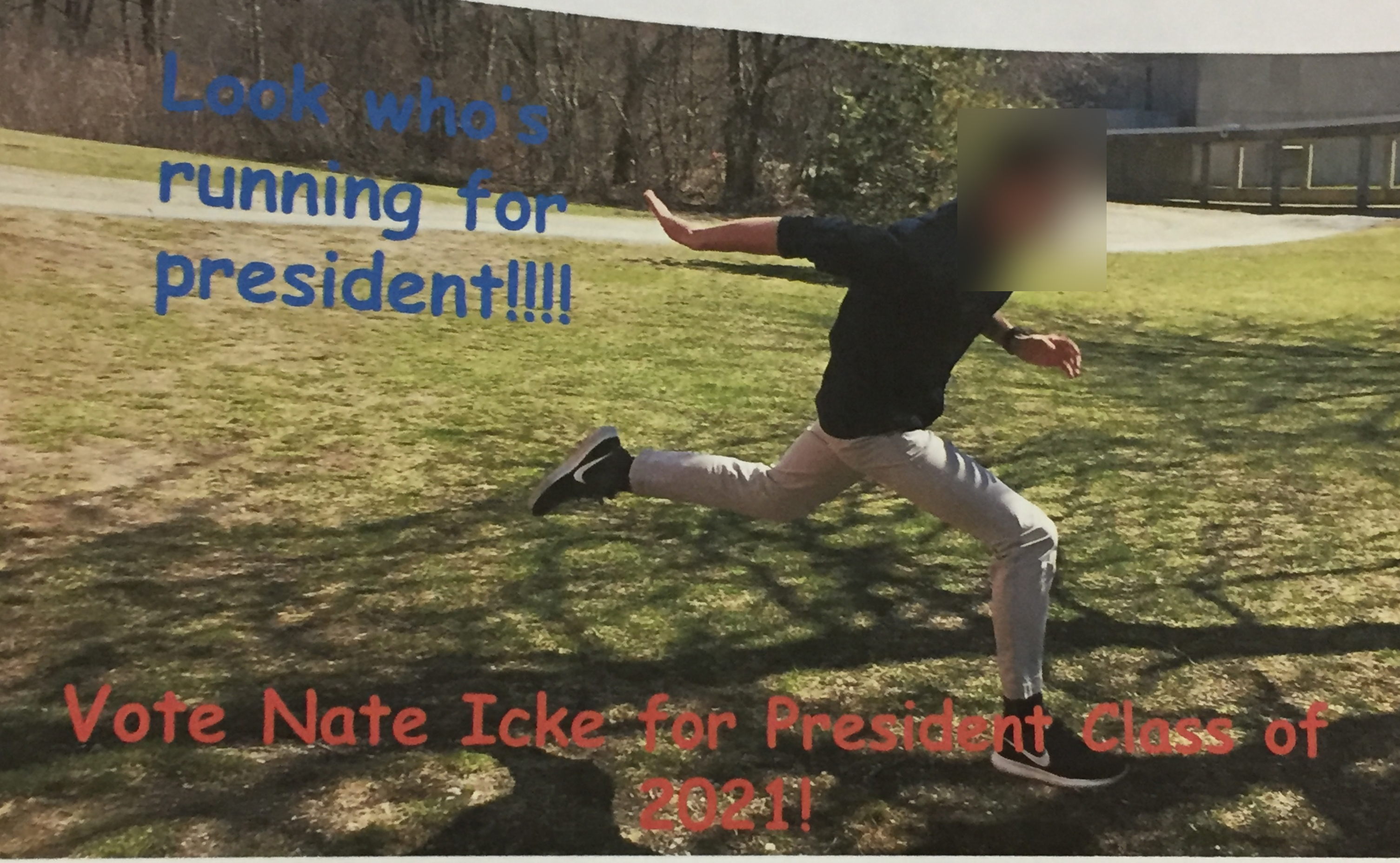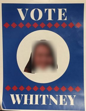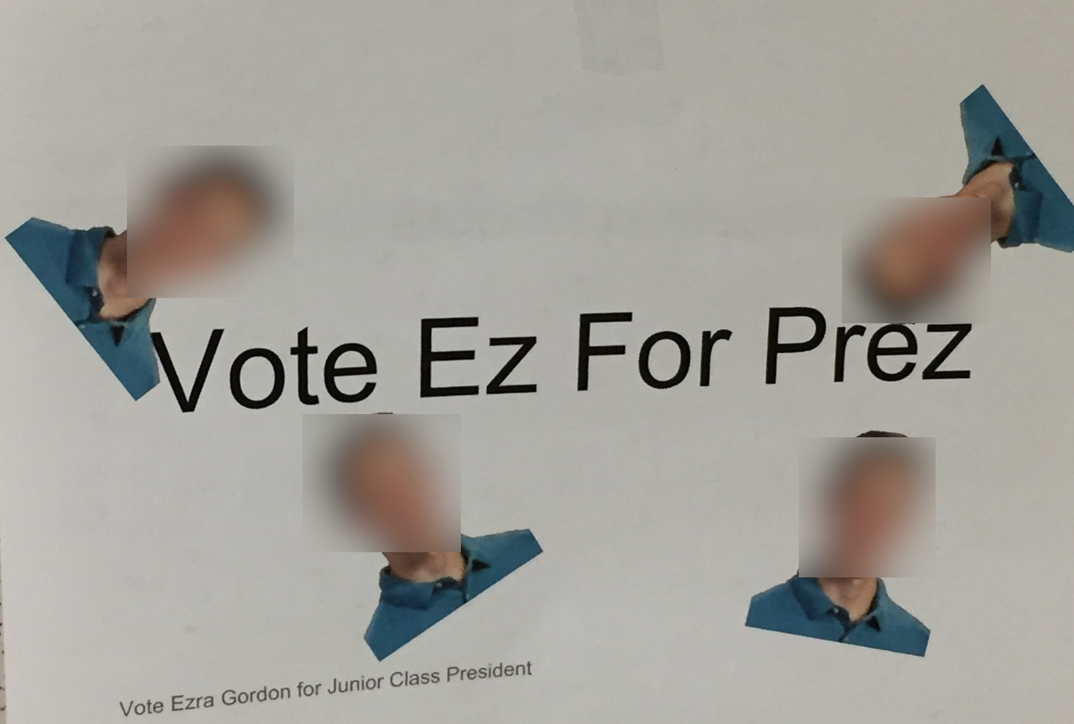 Randomly chosen campaign posters for candidates for class officer positions as seen on the walls of Weston High School this morning (identifying images have been deliberately blurred to protect student privacy):