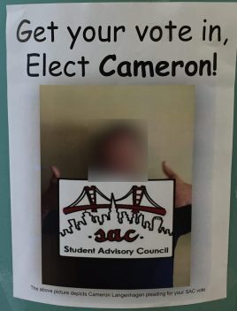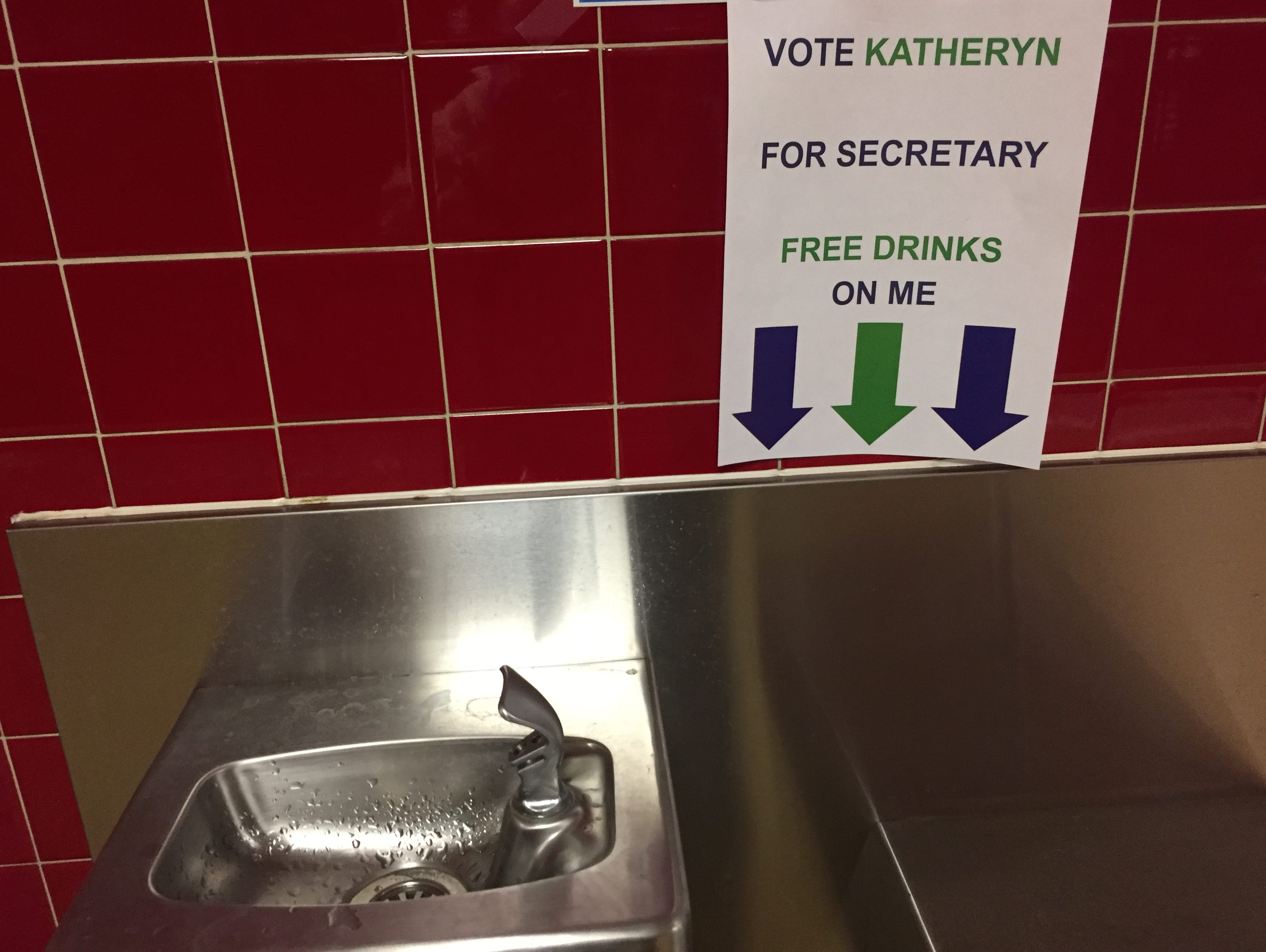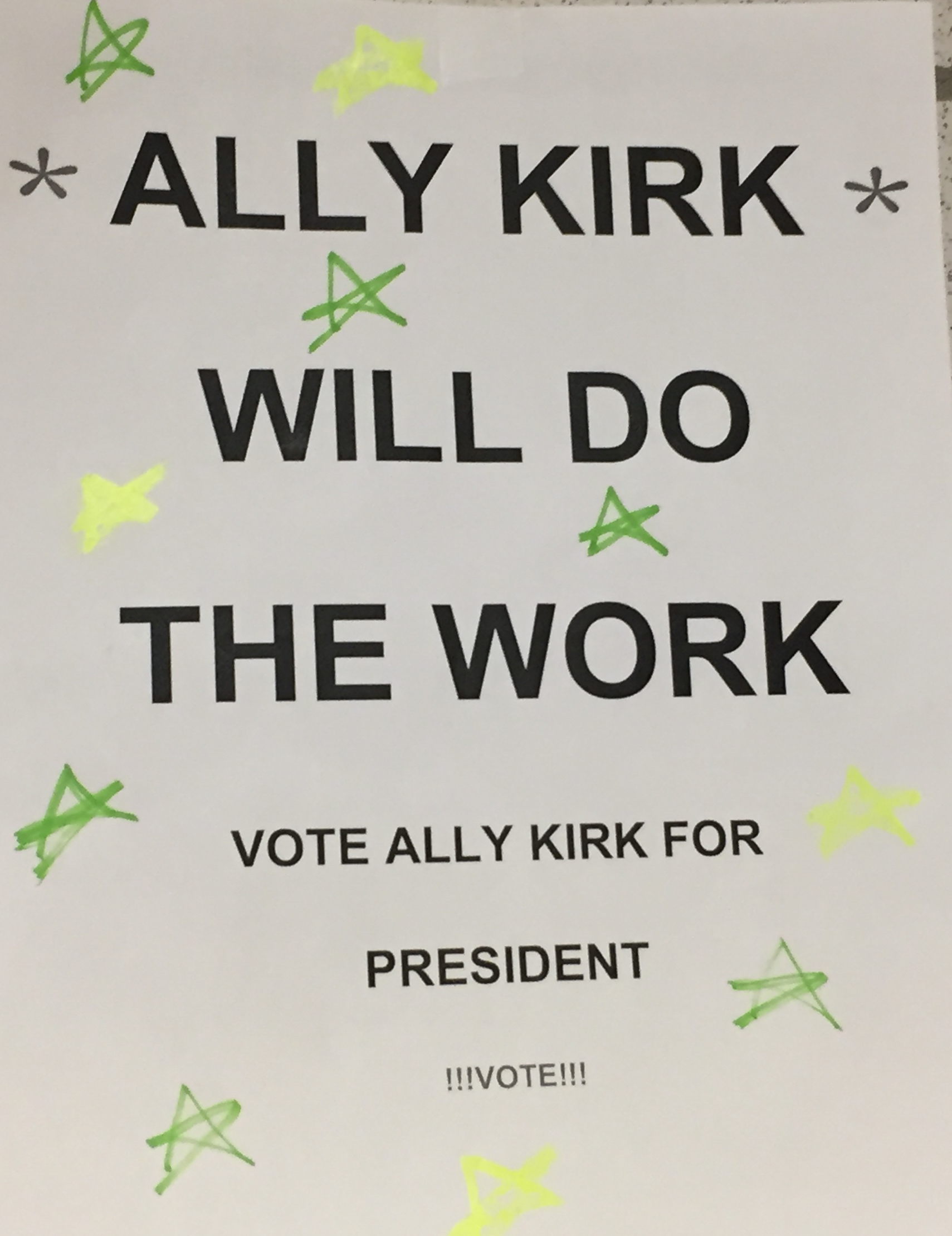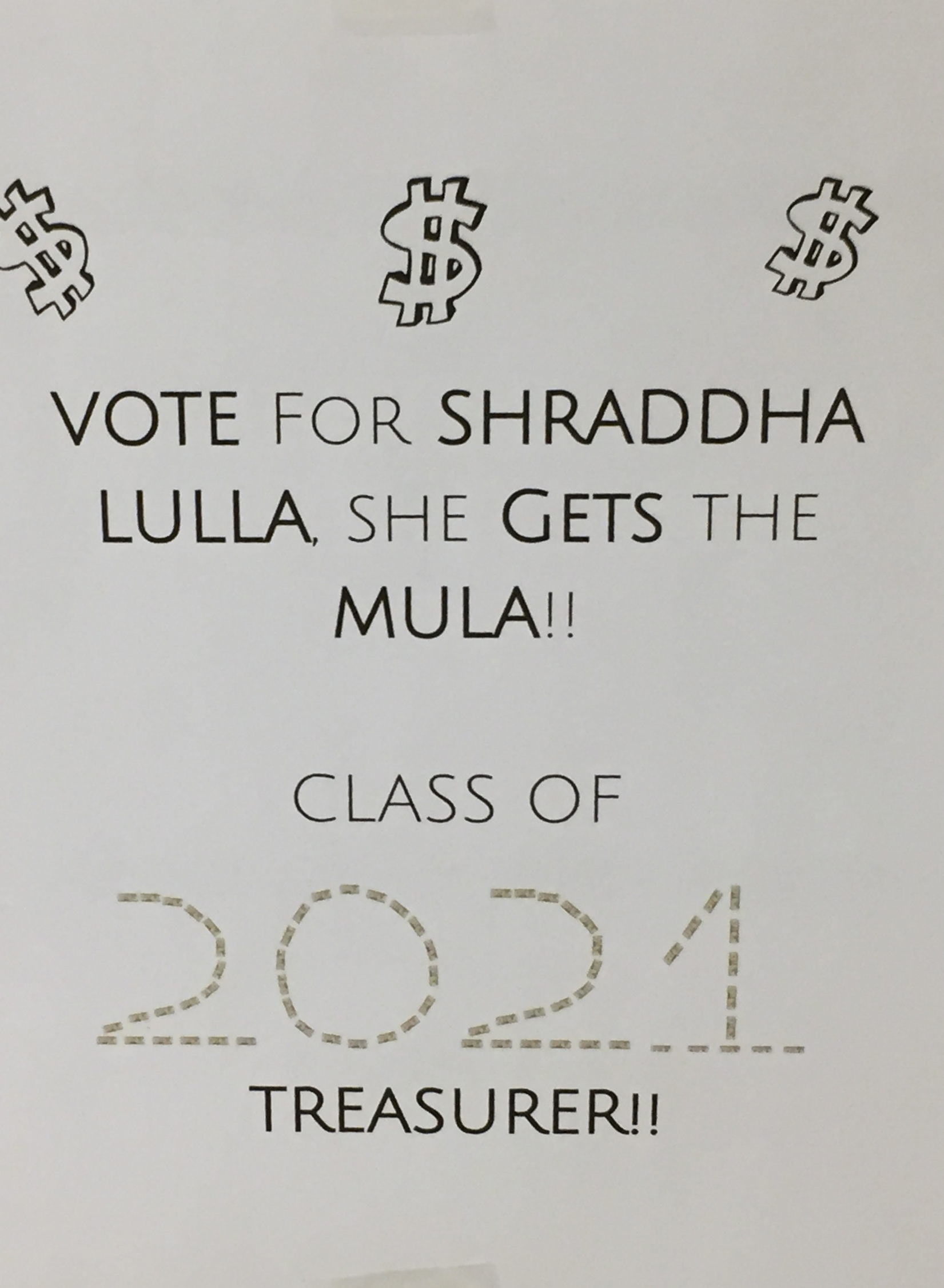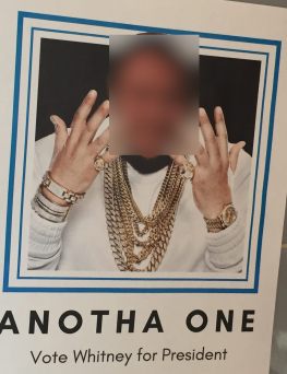 Randomly chosen campaign posters for candidates for class officer positions as seen on the walls of Weston High School this morning (identifying images have been deliberately blurred to protect student privacy):