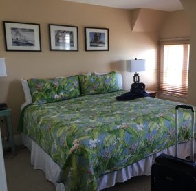 I shouldn’t be referring to the hotel “room,” actually, as it was definitely a suite, with a separate living room/kitchenette combination next to the bedroom. Real doors, not just doorways, made it possible for Barbara to watch TV in the living room after I went to bed at a reasonable hour, and for me to putter around the kitchenette or read in the living room in the morning while Barbara was still oversleeping. (No judgment implied.) Here are images of the two rooms: