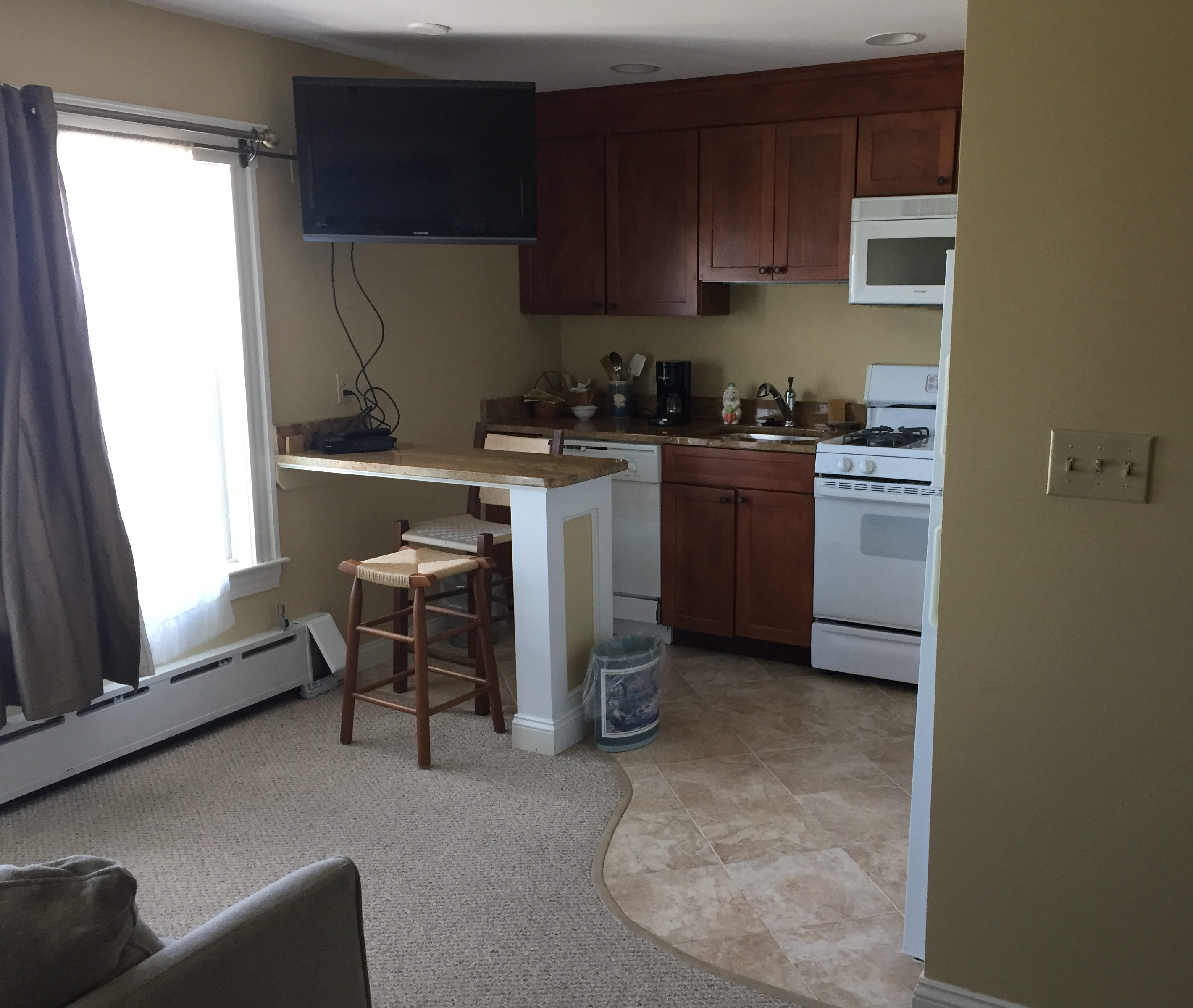 I shouldn’t be referring to the hotel “room,” actually, as it was definitely a suite, with a separate living room/kitchenette combination next to the bedroom. Real doors, not just doorways, made it possible for Barbara to watch TV in the living room after I went to bed at a reasonable hour, and for me to putter around the kitchenette or read in the living room in the morning while Barbara was still oversleeping. (No judgment implied.) Here are images of the two rooms: