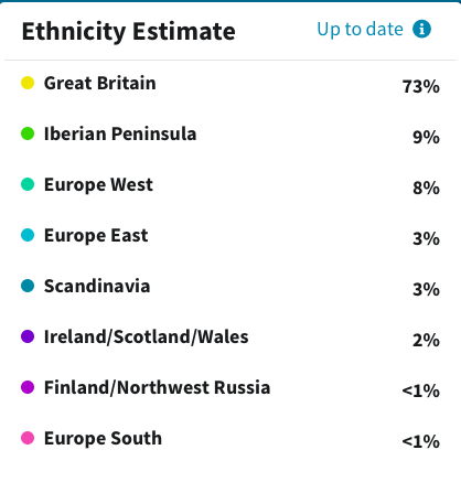 The day before yesterday, I reported the results of my DNA test to determine my ancestry. Barbara had her DNA tested at the same time. To the surprise of no one who knows us, her results were very different from mine, though still European. Here, with Barbara’s permission, are her results. The map may take a little interpreting.