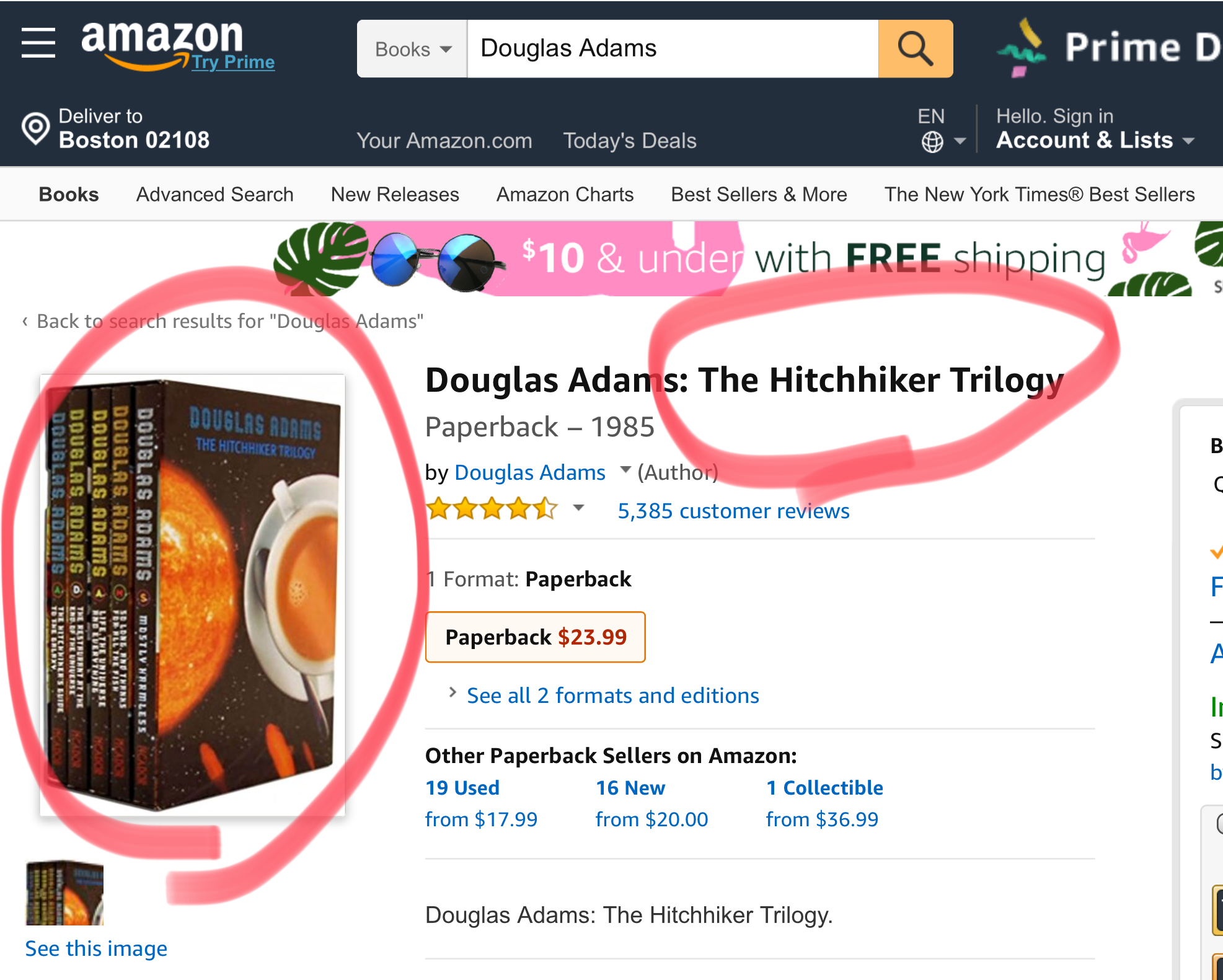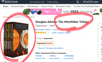 You’ll notice something strange in this screen shot: the Hitchhiker’s trilogy apparently consists of five books, not three.