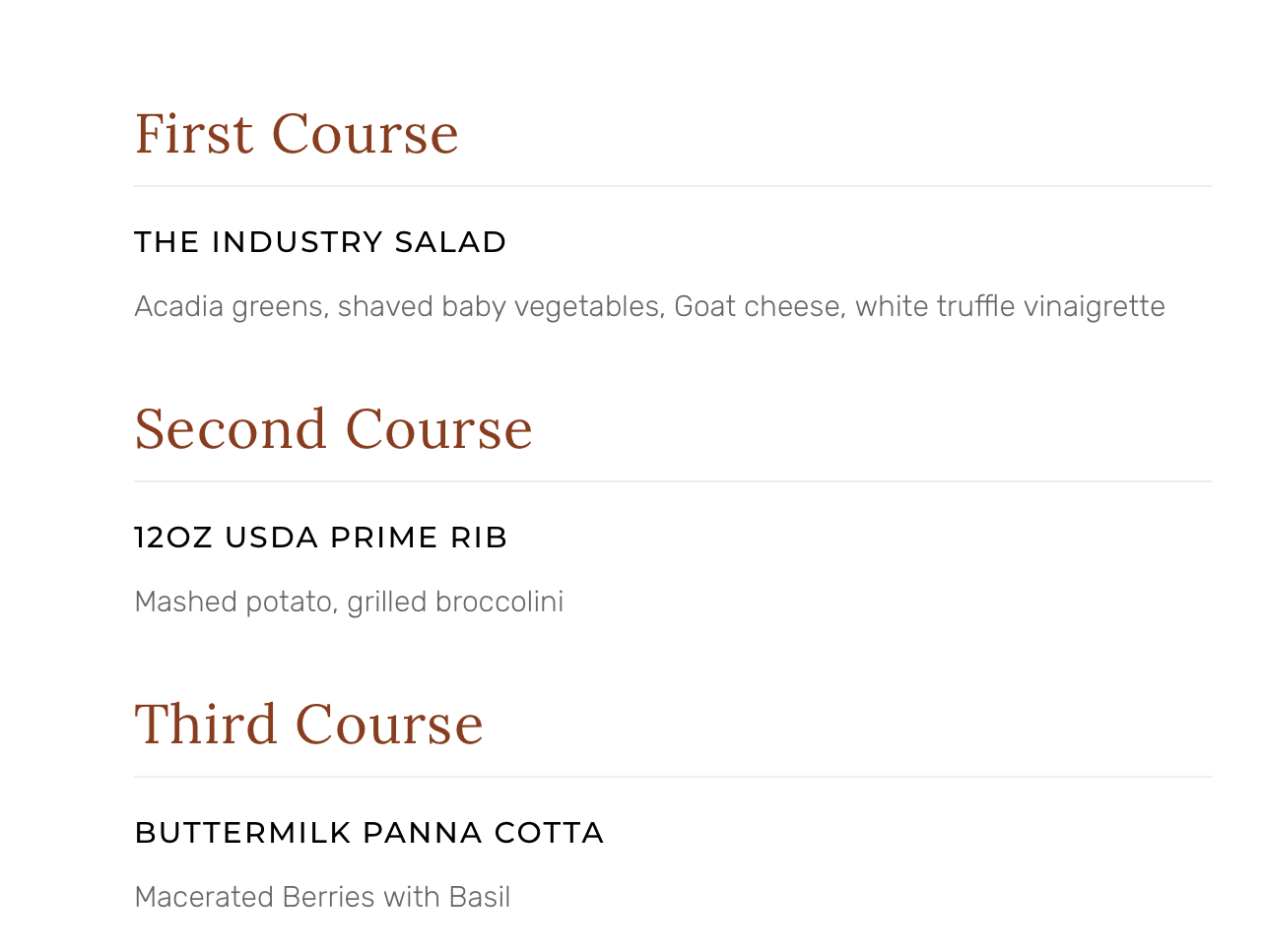 Night before last was the third time that Barbara and I had dinner at The Industry. I had already written enthusiastic reviews of the first two — one year ago and then six months ago — in what had been expected to be an annual visit but has turned out to be a semi-annual one. The usual idea of giving any restaurant three tries, especially if it is new, is that you don’t want to judge it by one or two initial and possibly atypical experiences.