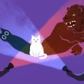 The cat on the (purple) mat