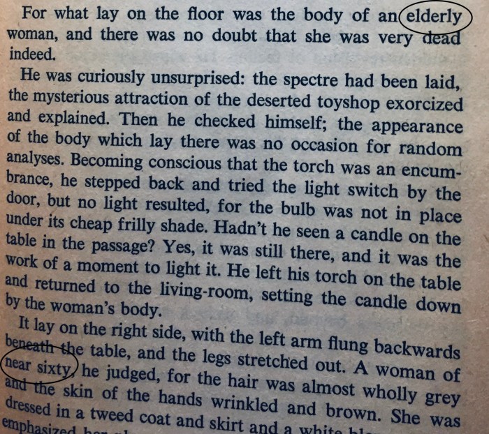 How old is she? From Edmund Crispin, The Moving Toyshop (1946):