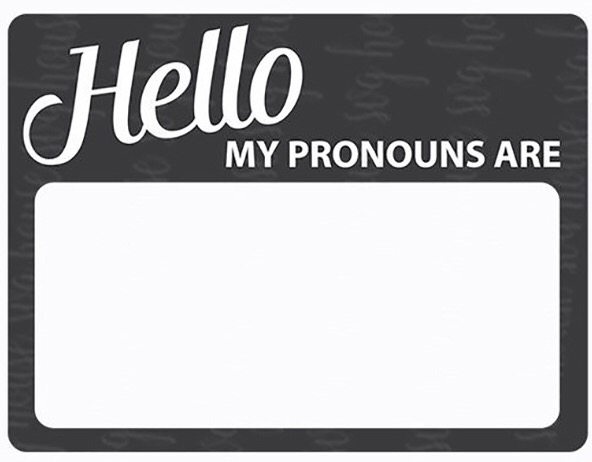 The newer reason is LGBTQ awareness; we don’t always know what pronoun somebody prefers, hence the name tag in the image. Picking a preferred pronoun is a normal orientation-week activity in many colleges.