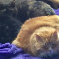 Three of our cats cuddled up together: do they love each other, or are they just heat-seeking mammals?