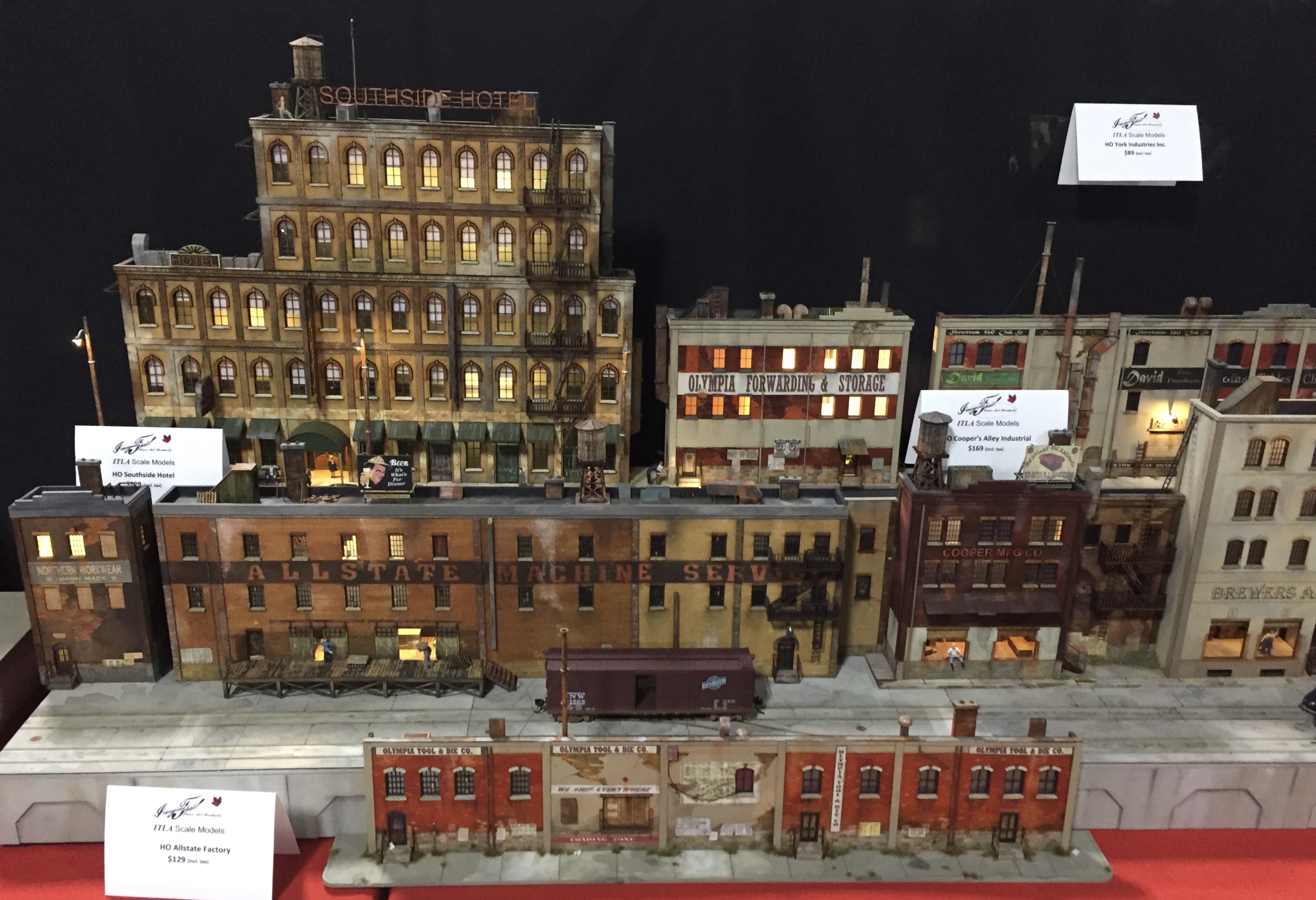 Most of the hundreds of exhibitors were vendors who were selling various products, ranging from locomotives to kits to completed buildings. Some were clubs and other organizations who displayed entire layouts, though of course they had to be portable enough to be able to be brought to Springfield. I particularly liked some of the beautifully done city buildings, even if they are a bit too pricey for me (as you can tell if you look closely at the price tags):