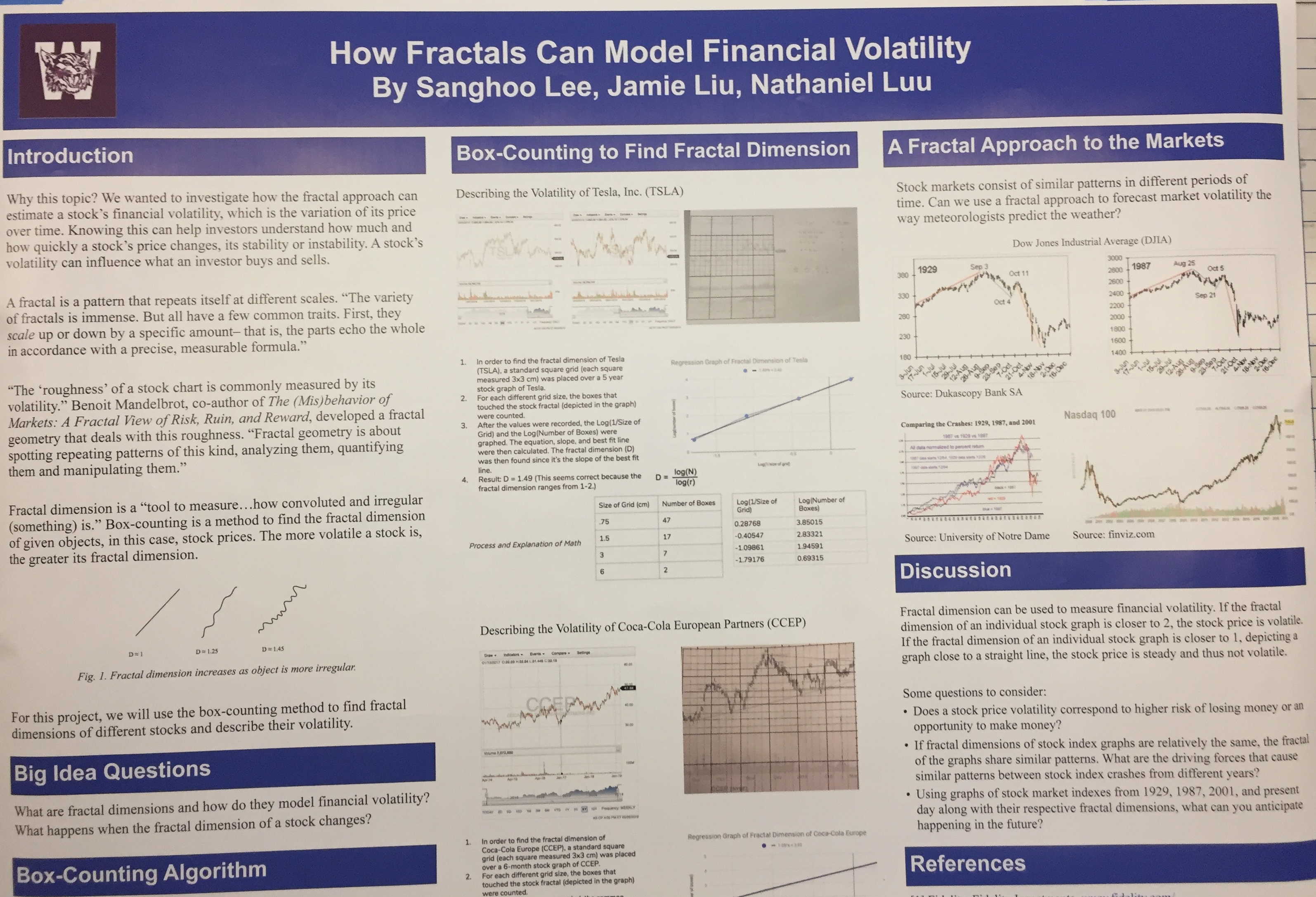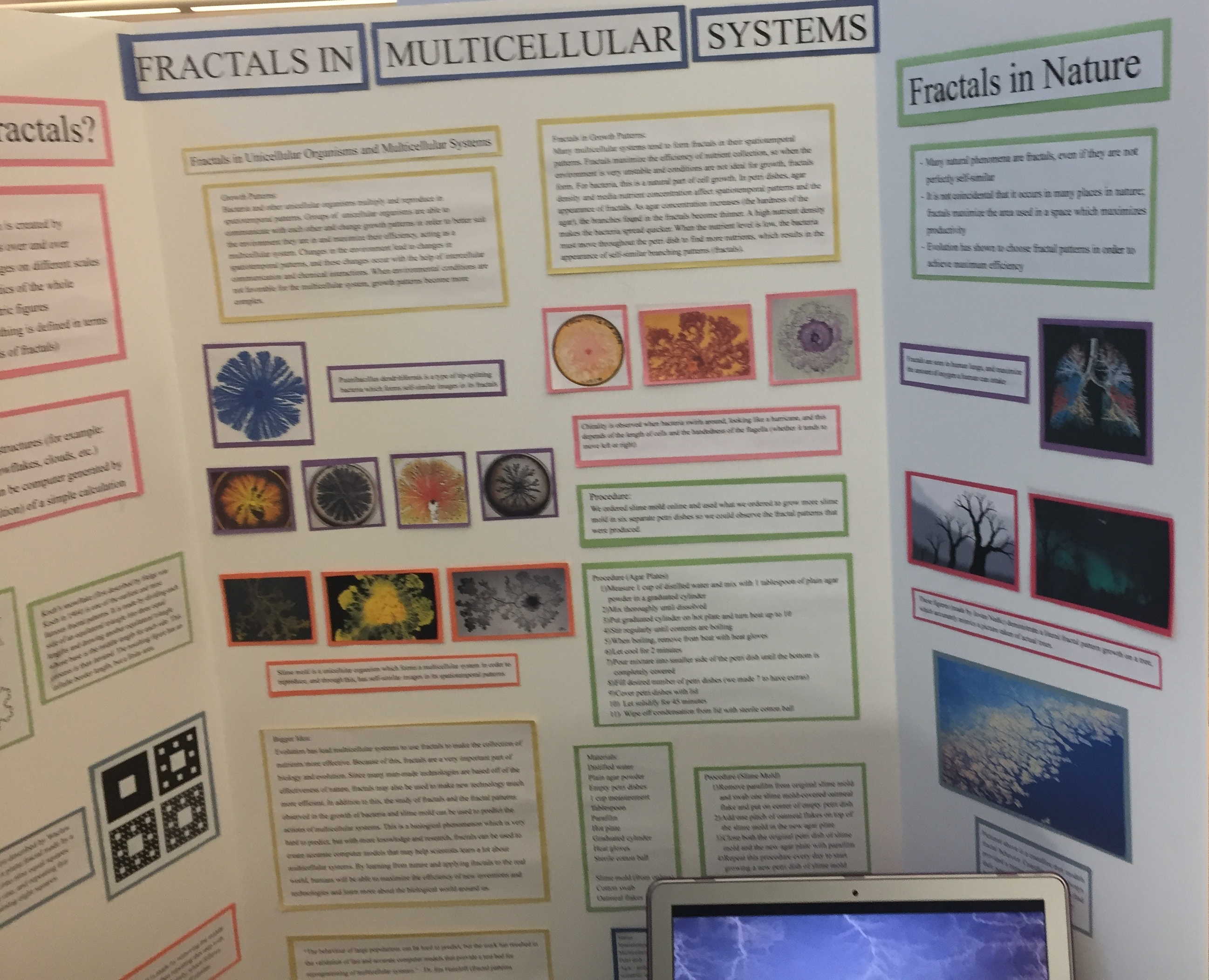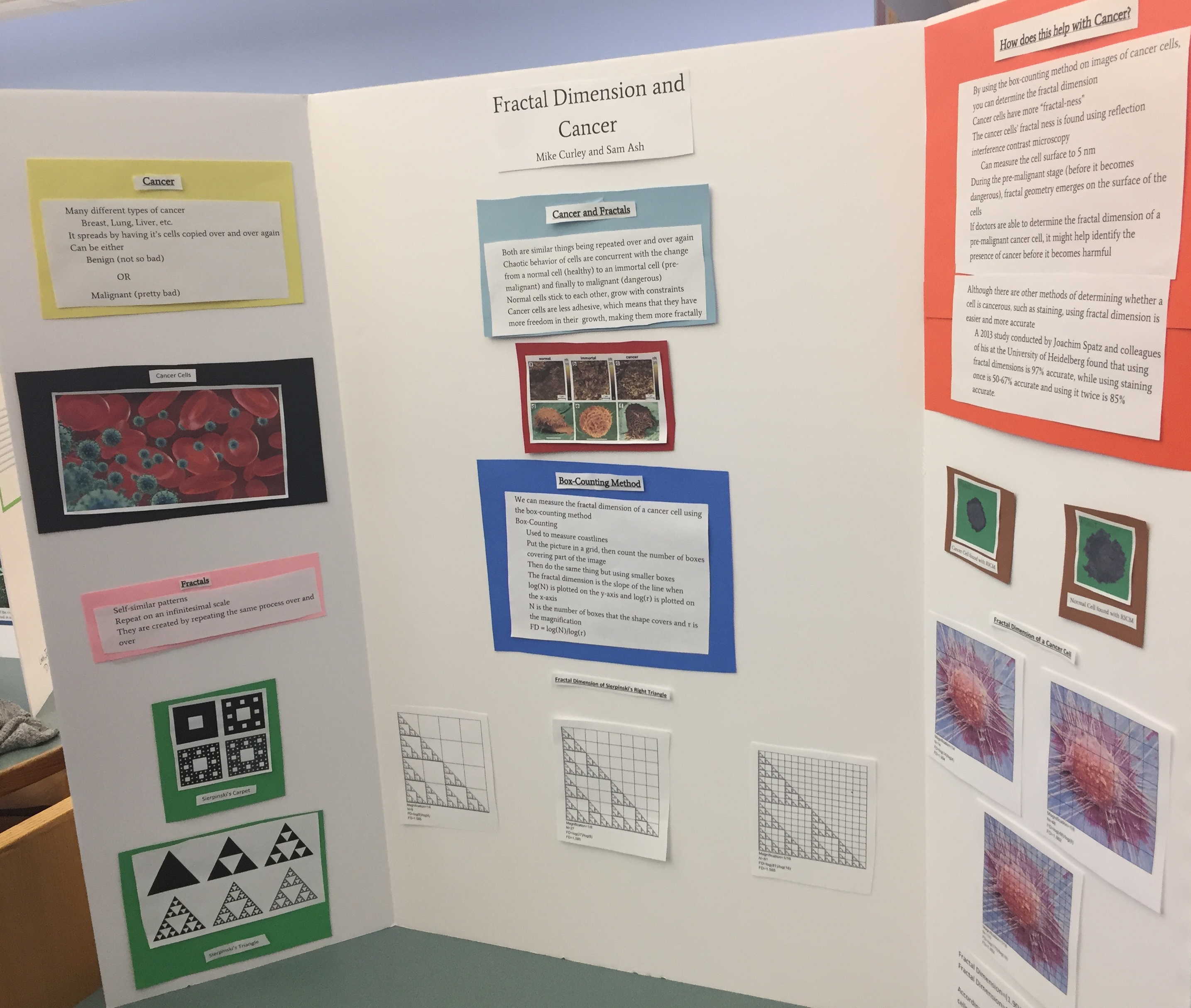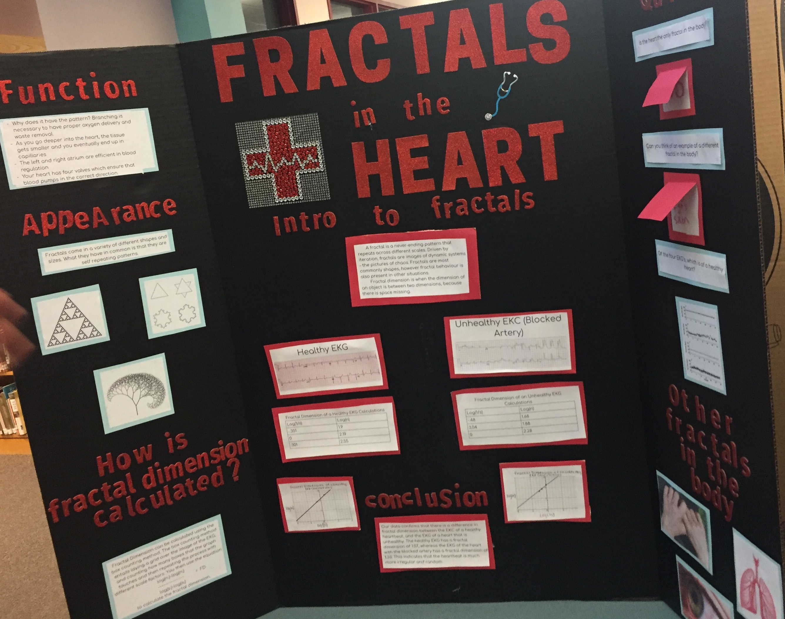 I returned to Weston yesterday for its 17th annual Fractal Fair. That’s a lot of fractal fairs! As you might expect for a subject that keeps evolving every year, with an entirely new set of exhibitors every year, the fair is always changing even if the basic precalculus curriculum has stayed largely the same. This year’s contributions were excellent, as usual, with a wide variety of topics, especially including a large number related to the human body, such as cancer, detection of heart disease, and airport security by iris identification (the eye, not the flower). I particularly enjoyed two different projects on fractals and music: