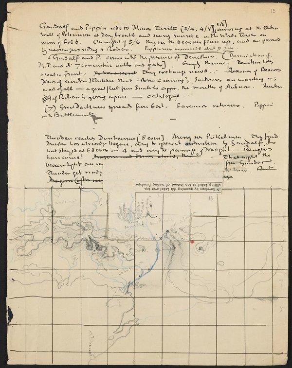 As I had promised in this space back on June 17 of last year, I went to the Morgan Library in NYC to see the magnificent exhibit of J.R.R. Tolkien’s notes, artwork, maps, and papers. Although it was unsurprisingly crowded — despite our wise choice to get there before it opened — it was well worth seeing and I am glad that we made it the inspiration for our week in New York. More on everything else that we did will appear in my next post in this blog; let’s just concentrate on the Tolkien exhibition for this post.
