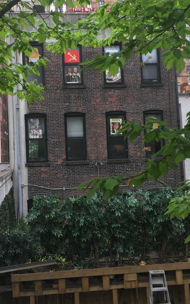 And then we have a photo that needs a little more context. As we were strolling along, we saw a combination of brand new apartment buildings that were deliberately constructed to be adjacent to the High Line — a feature — and older buildings that contained tenants who were already there when the High Line was built. Here’s a view of one of them: