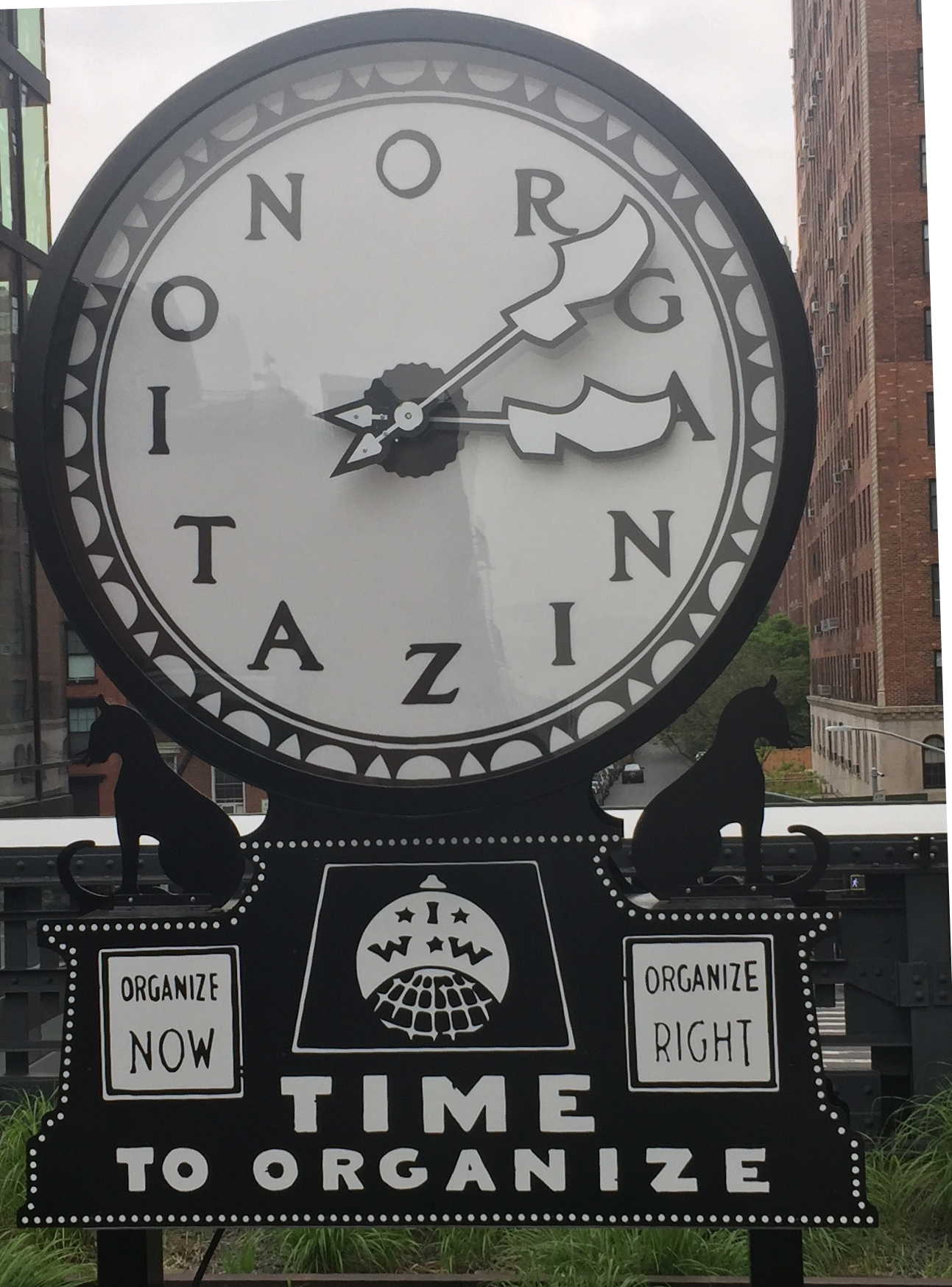 So let’s look at some non-botanical views, most of which turn out to be political. First we have an unusual gigantic clock, which will be meaningful to you if you know the history of the labor movement in the U.S. (and there are cats!):