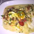 It may not look like much in the picture, but it sure was yummy: grilled sea scallops with fresh corn, cherry tomatoes, and peaches (that’s a peach, not an egg yolk, in the picture), all served over parsnip puree. This… Read More ›