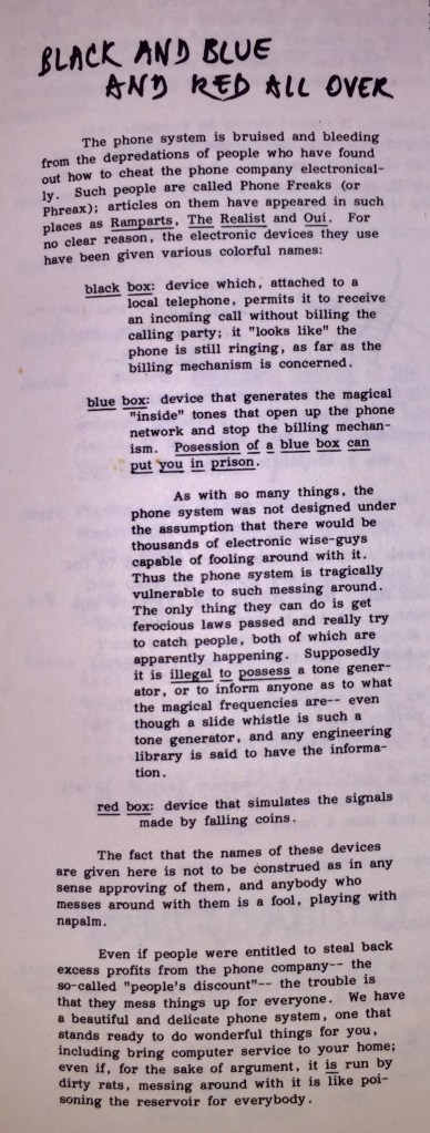 As I said at the top of this post, the purpose of Computer Lib is to help you understand computers — but in a social awareness sense much more than a techie sense. It was trying to start a revolution, and in a sense it did, though the revolution went in a direction that no one anticipated. No one except for the occasional science fiction writer anticipated Facebook, Apple, Microsoft, and Google. Read the excerpt below (or on the right, depending on your settings), and then check out Ted Nelson’s YouTube commentary, in which he explains how his whole life has stood for “freedom, privacy, creativity, understanding, new forms of writing, new forms of education, non-hierarchical ways of structuring, non-hierarchical ways of writing, and clarity of organization.’