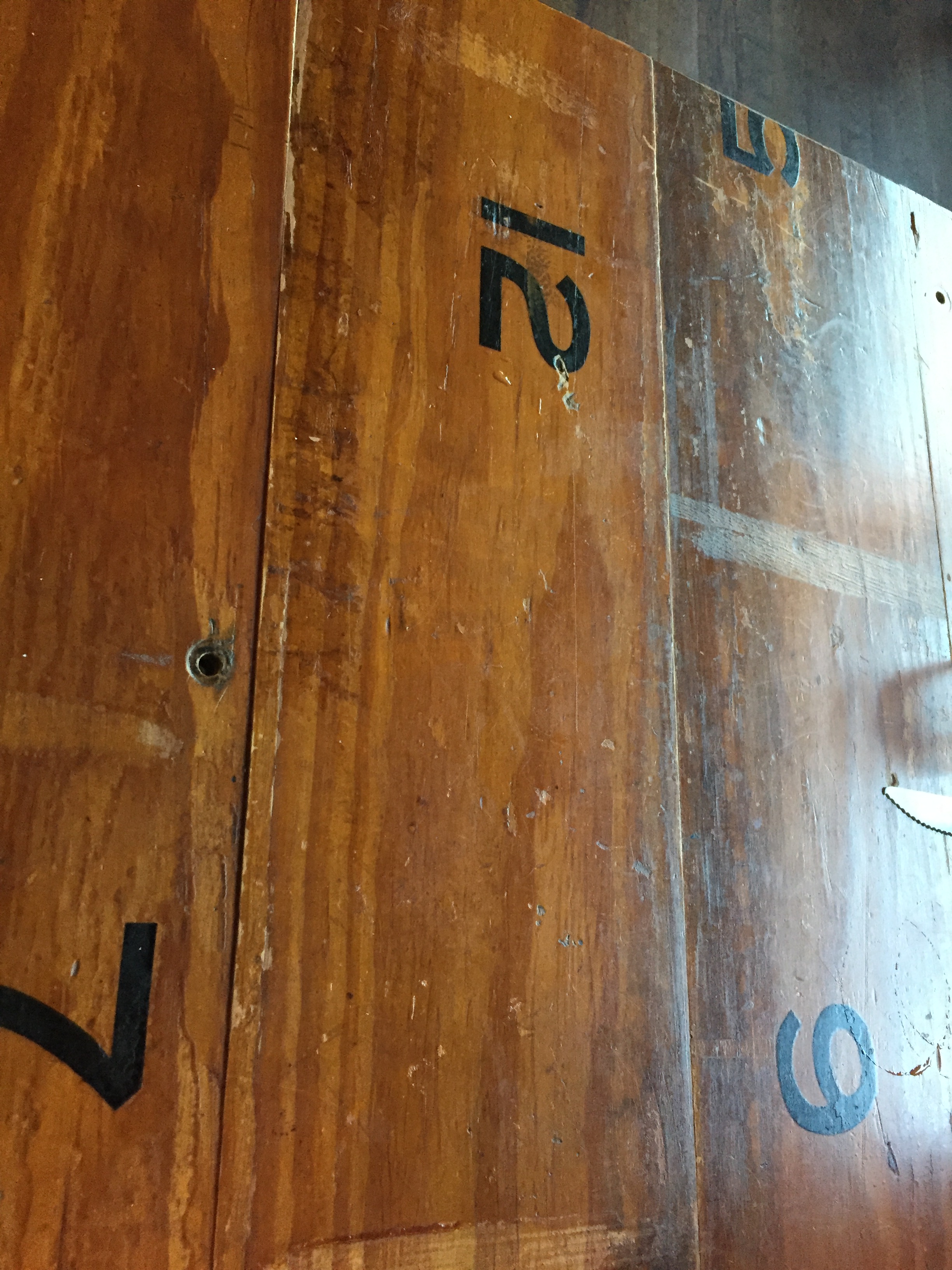 The first thing we noticed was our unusual table, which had obviously been made out of recycled boards. But what was up with the numbers?