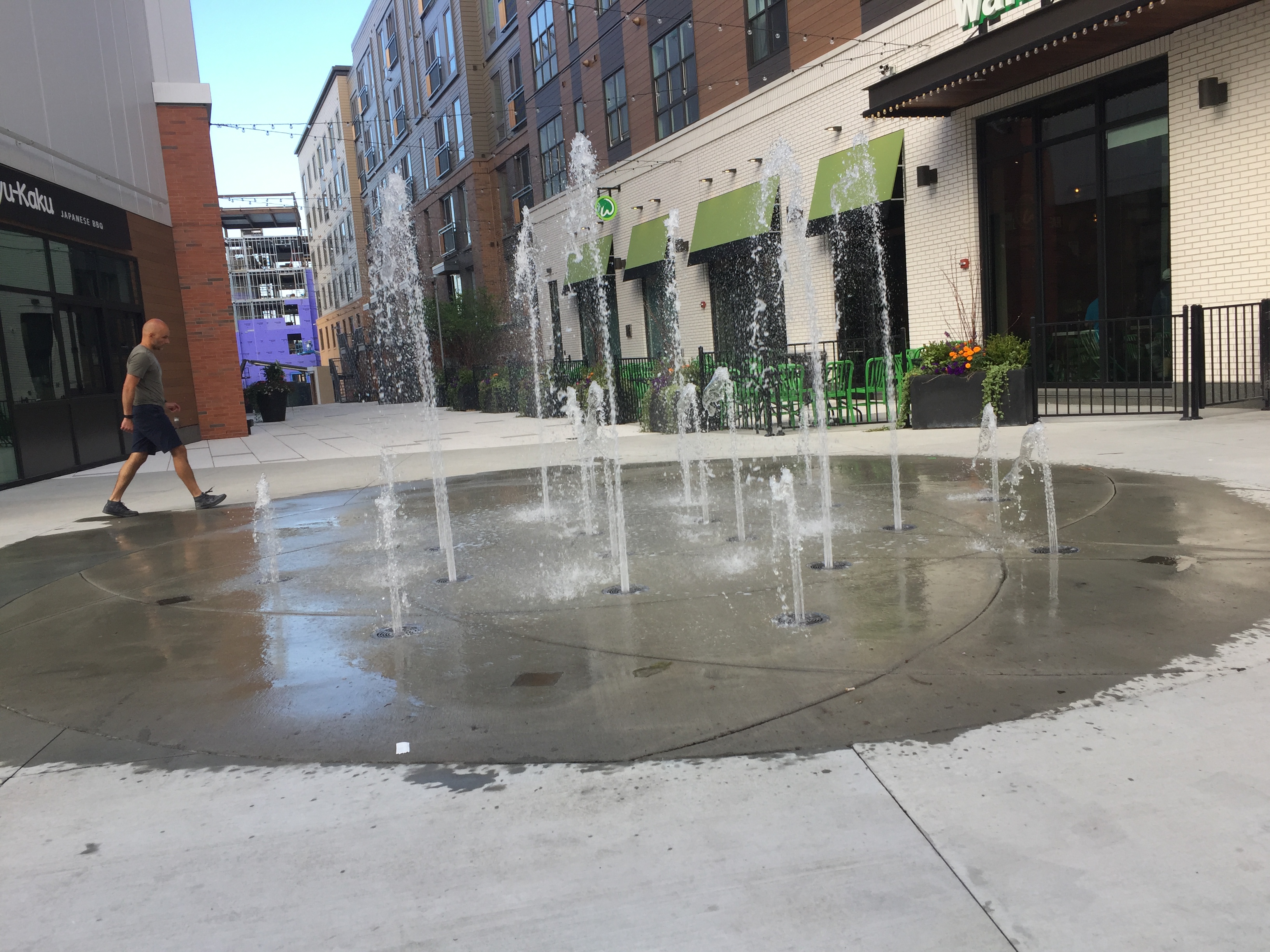 As long as we were at the South Bay Shopping Center yesterday, Barbara and I decided to reserve a table at the “new” 110 Grill through Open Table. (New to Dorchester, and new to us, that is. The restaurant is part of an existing chain.) This entire part of South Bay is a huge, newly constructed complex, with restaurants, a movie theater, hotels, apartments, condos, streets, a free parking garage, plazas — looking just like Assembly Row in Somerville. I don’t know whether it was consciously modeled on Assembly Row, or if that’s just what’s currently trendy.