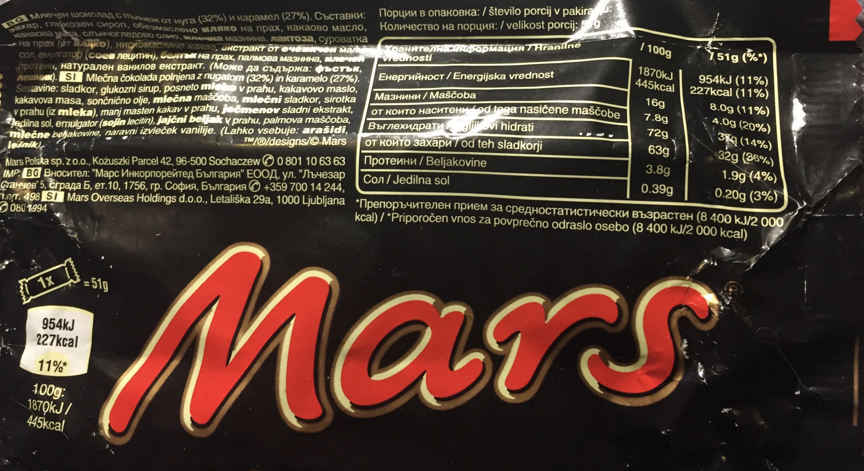 The image below shows the trilingual wrapper of a candy bar abandoned by a film crew that had been shooting in South Boston near Dorchester. Can you figure out what the three languages are?