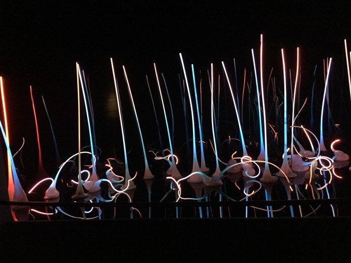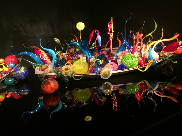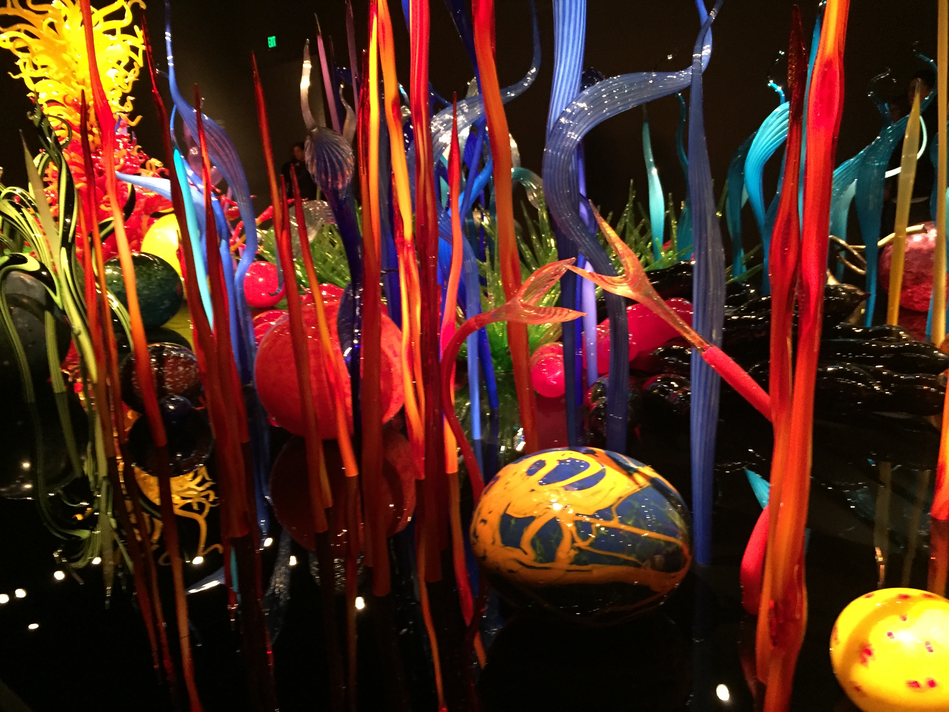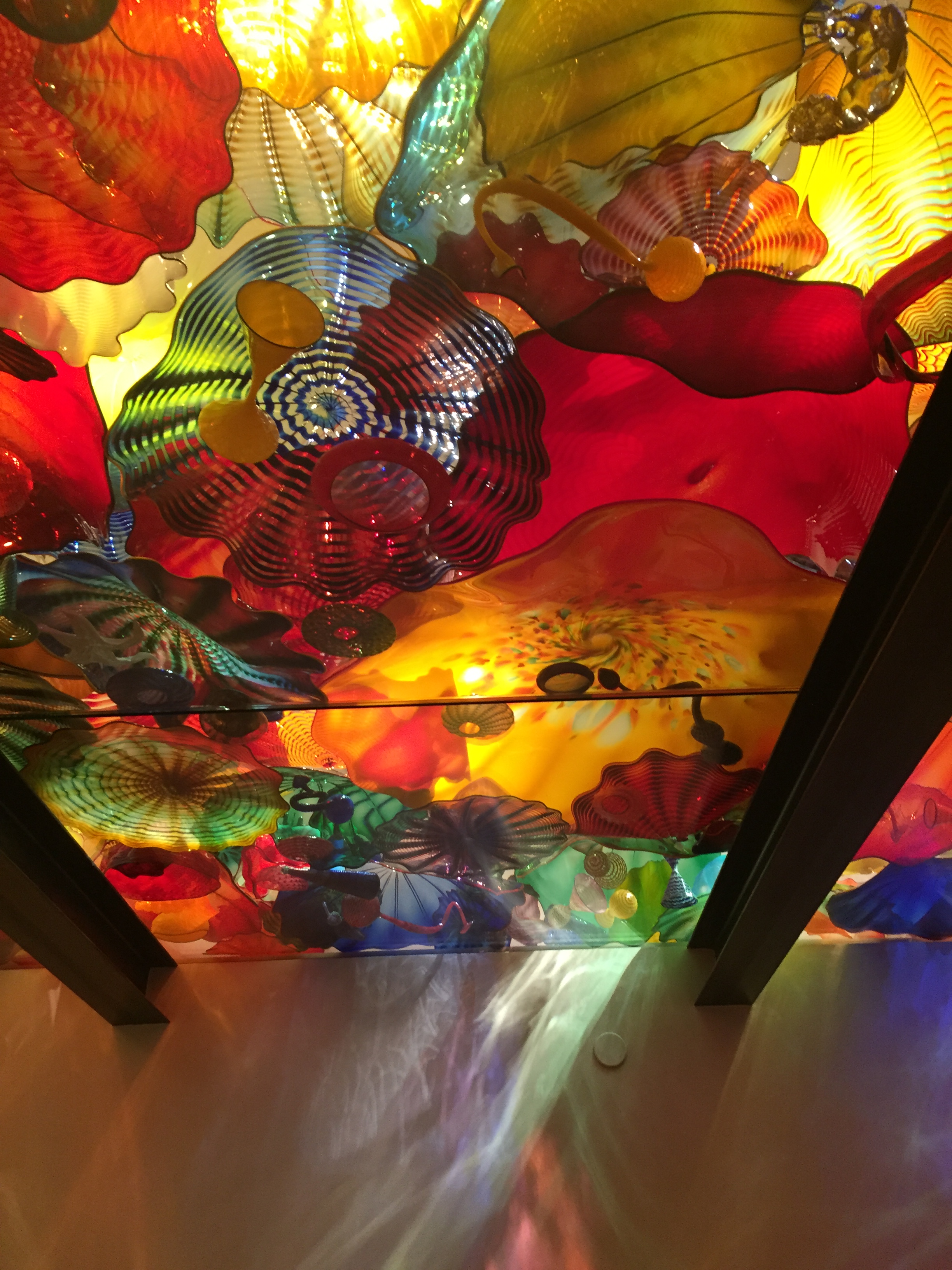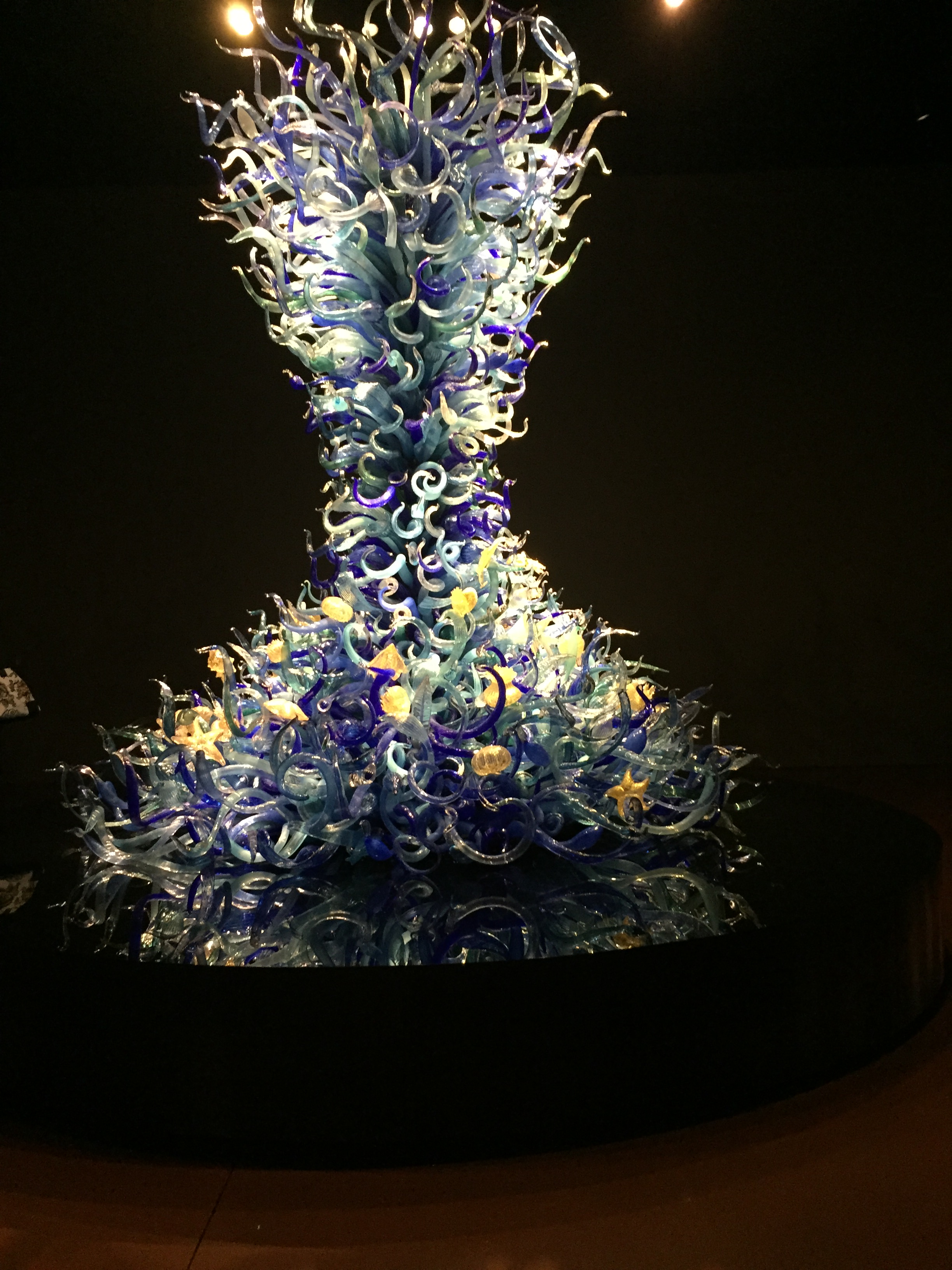 We had missed this show when it had briefly taken up temporary residence in Boston, so I was especially glad to see the permanent exhibit in its natural environment. In case you are unaware of Dale Chihuly, all you have to know is that he is an American sculptor in glass, born in 1941, who specializes in beautiful and amazing works that remind the viewer of objects in the natural world and artifacts made of other materials. Here are half a dozen shots: