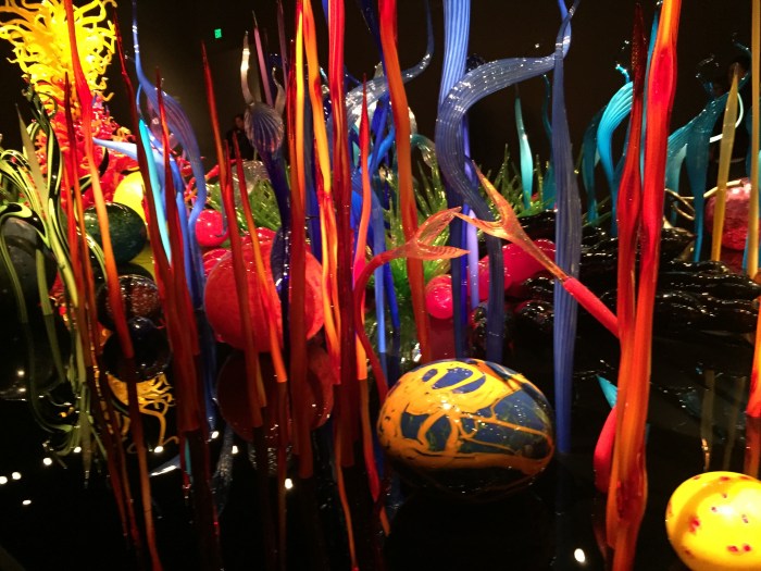 Barbara and I are here in Seattle for our niece’s wedding and a mini-vacation, while Barbara’s sister Brenda house-sits and cat-sits. William appreciates her long fingernails, which are designed for scritching. Anyway, all the details about Seattle will come in a later post in a couple of days — but I took so many pix of the Chihuly Garden and Glass Museum that I wanted to post a few of them here in a separate post.