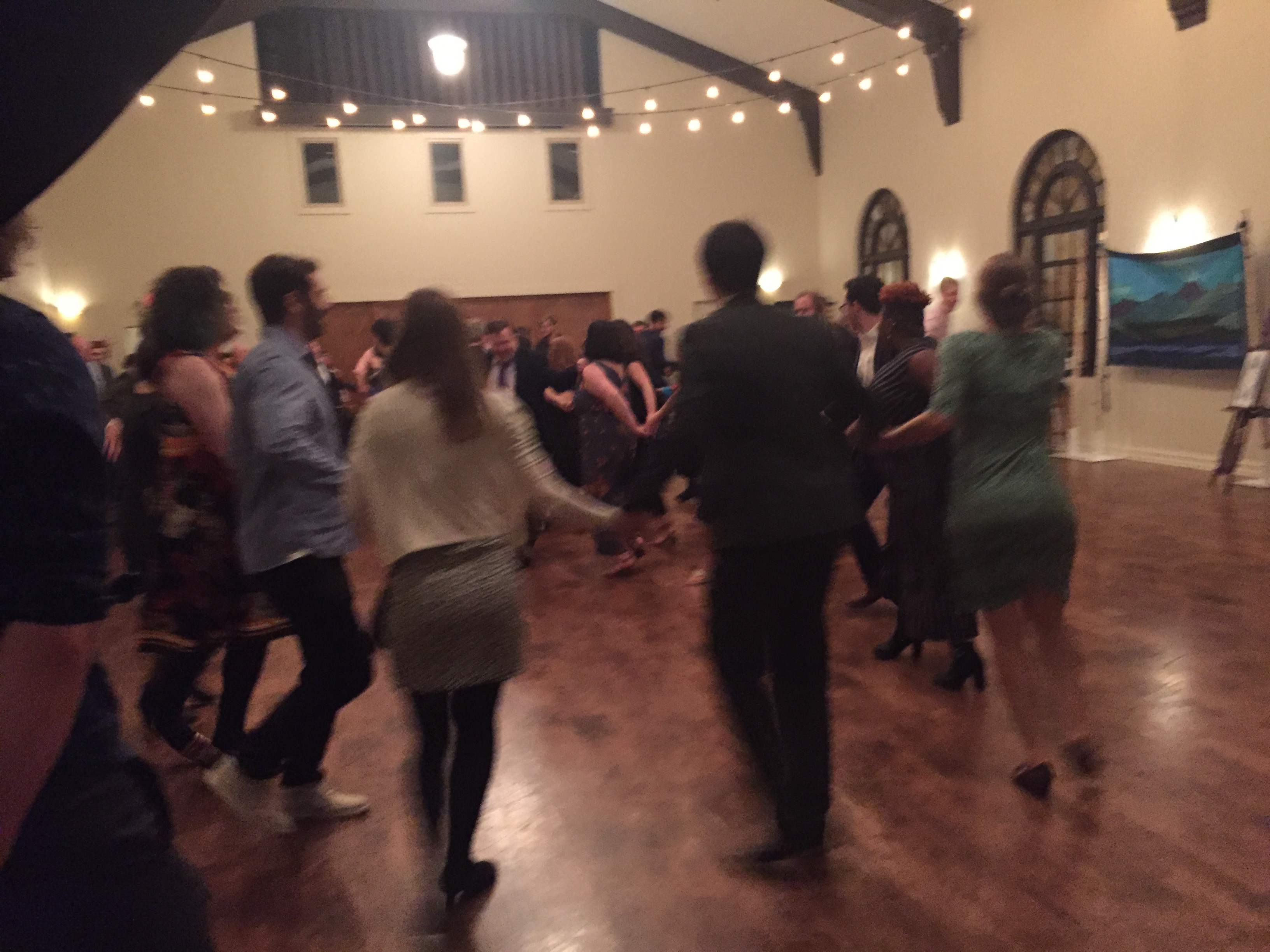 The program had to be specially crafted, as the Abbey’s calendar and other constraints necessitated a Saturday wedding of all things. But fortunately sundown comes early in late October, so not too much juggling was needed, mostly just breaking up the reception into two parts, before and after the ceremony: starting at 5:30 we had the wedding feast, followed by “teatime,” Havdallah, signing the Ketubah, the official betrothal (!), the official marriage ceremony, and then the rest of the reception (dancing, etc.). Since Hannah’s sister Aviva is a math teacher, as is their mother (my sister, Ellen), and they did the table arrangements, it turned out that the tables were numbered in a way that puzzled most of the guests: 0, 1, 1 again, 2, 3, 5, 8, 13, 21, 34, 55, and 89. And how do you find your table, you ask? You just look at the chart on the wall, showing that the tables were arranged numerically in a spiral. You, faithful reader, are not puzzled by this at all, of course.