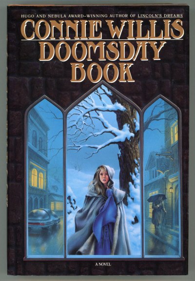 If you’re not familiar with Willis’s time travel series, there are a few things you should know, particularly the premise. Oxford University historians can travel back in time to observe and participate in historical events, subject to certain physical constraints: you can’t cause a paradox, such as running into yourself or killing a direct ancestor, you can’t do anything else that would alter the course of history, you can’t bring objects back with you into what would be the future for those objects, and you can’t guarantee precision of where and when you arrive. In The Doomsday Book, a young medievalist goes back to the year 1320 to get first-hand knowledge of the Middle Ages.