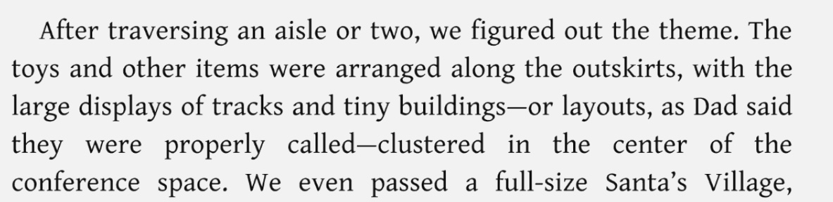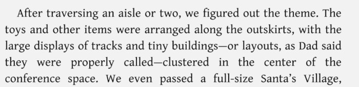 You can tell from the second sentence in the initial quote above that Early is familiar with model railroads and train shows. That, of course, is what initially hooked me on Murder on the Toy Town Express, but it’s not really the main point of the story. Come for the trains, stay for the mystery.