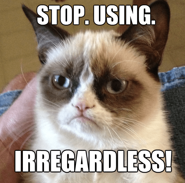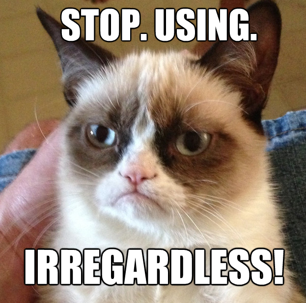 Well, no, not really. Not any time soon, at any rate. But that’s not the topic of this post; the word “irregardless” is.