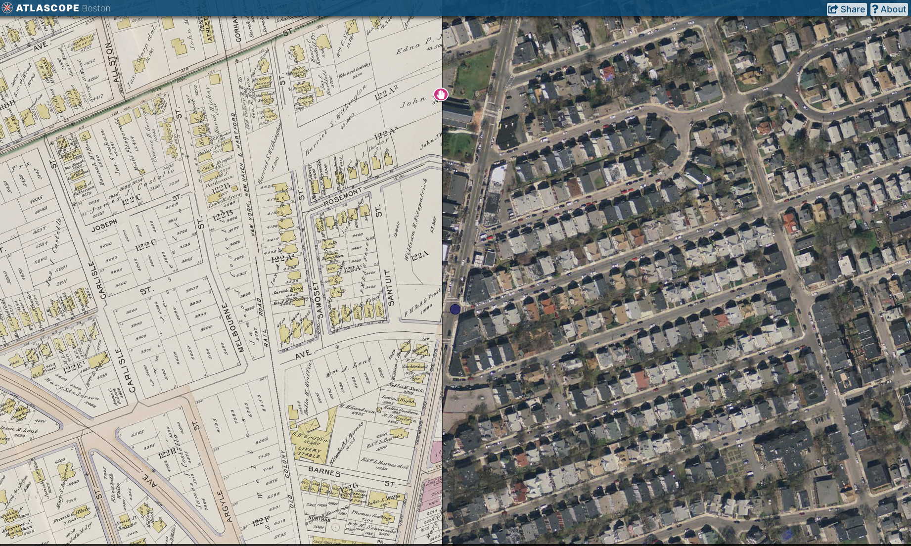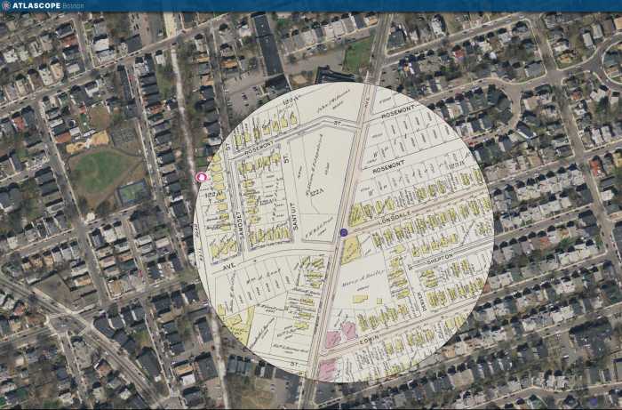 Maps have fascinated me since I was a small child. To me they are a great example of applied mathematics: a useful model of selected quantitative features of the real world. A few years ago I wrote an essay in which I mused about what some of my academic interests have in common — including cartography — and the Atlascope software certainly feeds that passion. The workshop was ably run by the designers of that software, Garrett Dash Nelson and Belle Lipton, of the Leventhal Map & Education Center at the BPL. They will be giving more Atlascope workshops in the future, featuring various Boston neighborhoods, so sign up for one when they become available. I also notice a lot of other interesting-sounding events in their calendar, so I’ll have to check some out.