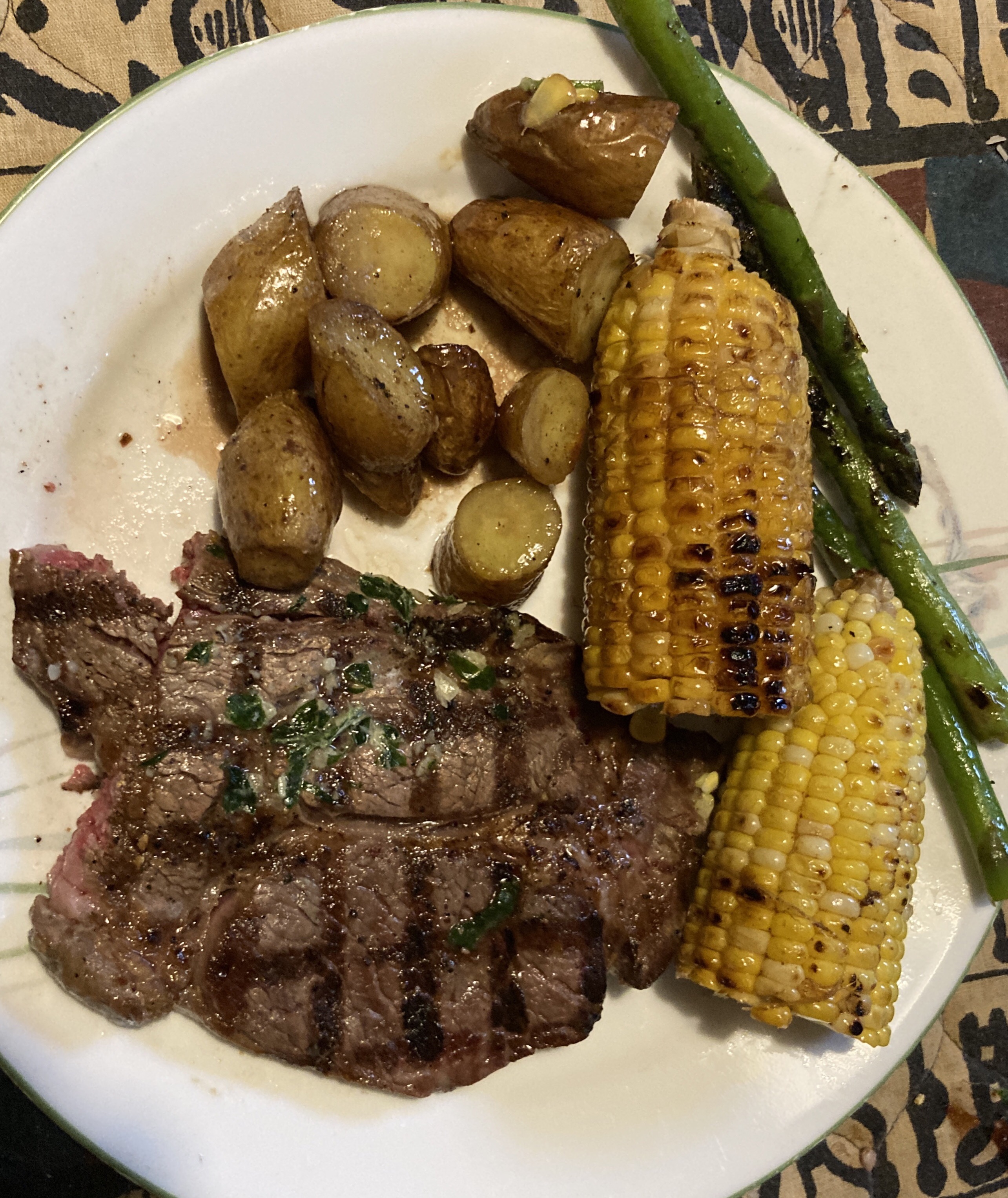 Still, it was great to have a really special Ashmont Grill takeout dinner from Tavolo last night: grilled ribeye with herb butter (cooked rare as ordered), roasted asparagus and potatoes, grilled corn on the cob, and lemon tart with whipped cream. All items were first-rate!