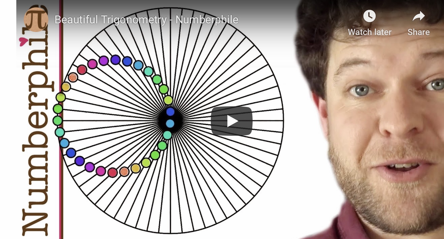 To see one reason why you too might love trig, take a few minutes to watch the Numberphile video titled “Beautiful Trigonometry.” Trig is both beautiful and useful: