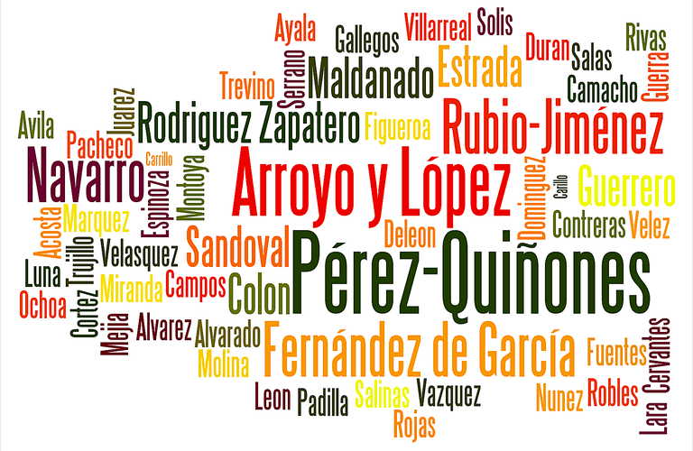 For the most part, people now take the first of their father’s two surnames and the first of the mother’s two surnames as their own last name. Women sometimes add their husband’s surname to the end of theirs or in place of their mother’s surname, sometimes with a “de” between the two names. Therefore, a husband and wife generally have different sets of double surnames, as do their children.