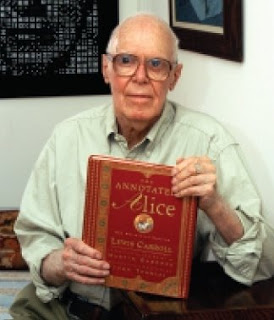 Martin Gardner (October 21, 1914 – May 22, 2010) was an American popular mathematics popular science writer, with interests also encompassing scientific skepticism, micromagic, philosophy, religion, and literature — especially the writings of Lewis Carroll, L. Frank Baum, and G. K. Chesterton. He was also a leading authority on Lewis Carroll. The Annotated Alice, which incorporated the text of Carroll’s two Alice books, was his most successful work and sold over a million copies. He had a lifelong interest in magic and illusion and was regarded as one of the most important magicians of the twentieth century. He was considered the doyen of American puzzlers. He was a prolific and versatile author, publishing more than 100 books.
