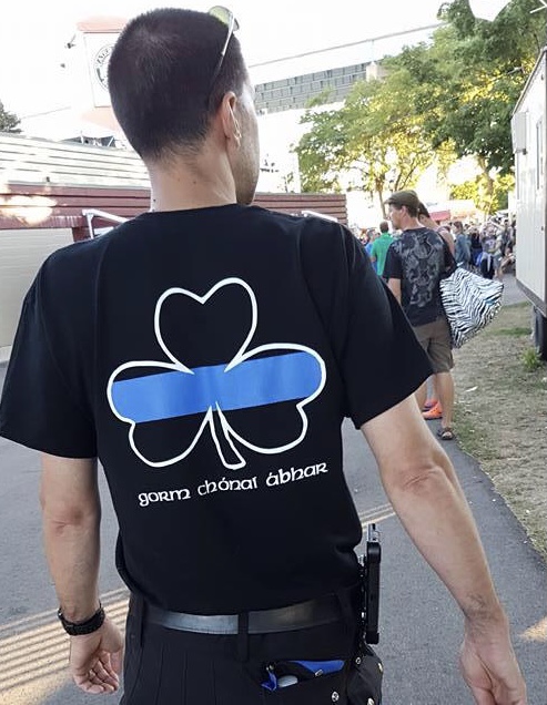 This photo, some of the discussion about it, and the very title of this post all come from a wonderful piece in “The Geeky Gaeilgeoir,” Audrey Nickel’s blog about Irish that I read regularly. As not all of her readers live in the U.S., the blogger starts by explaining the Black Lives Matter movement and the “Blue Lives Matter” reaction to it; those two facts set the context for this shirt. But what’s going on linguistically?