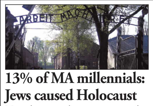 Just in case the year 2020 hasn’t been depressing enough, I was appalled to read today that 13% of millennials in Massachusetts believe that Jews caused the Holocaust.