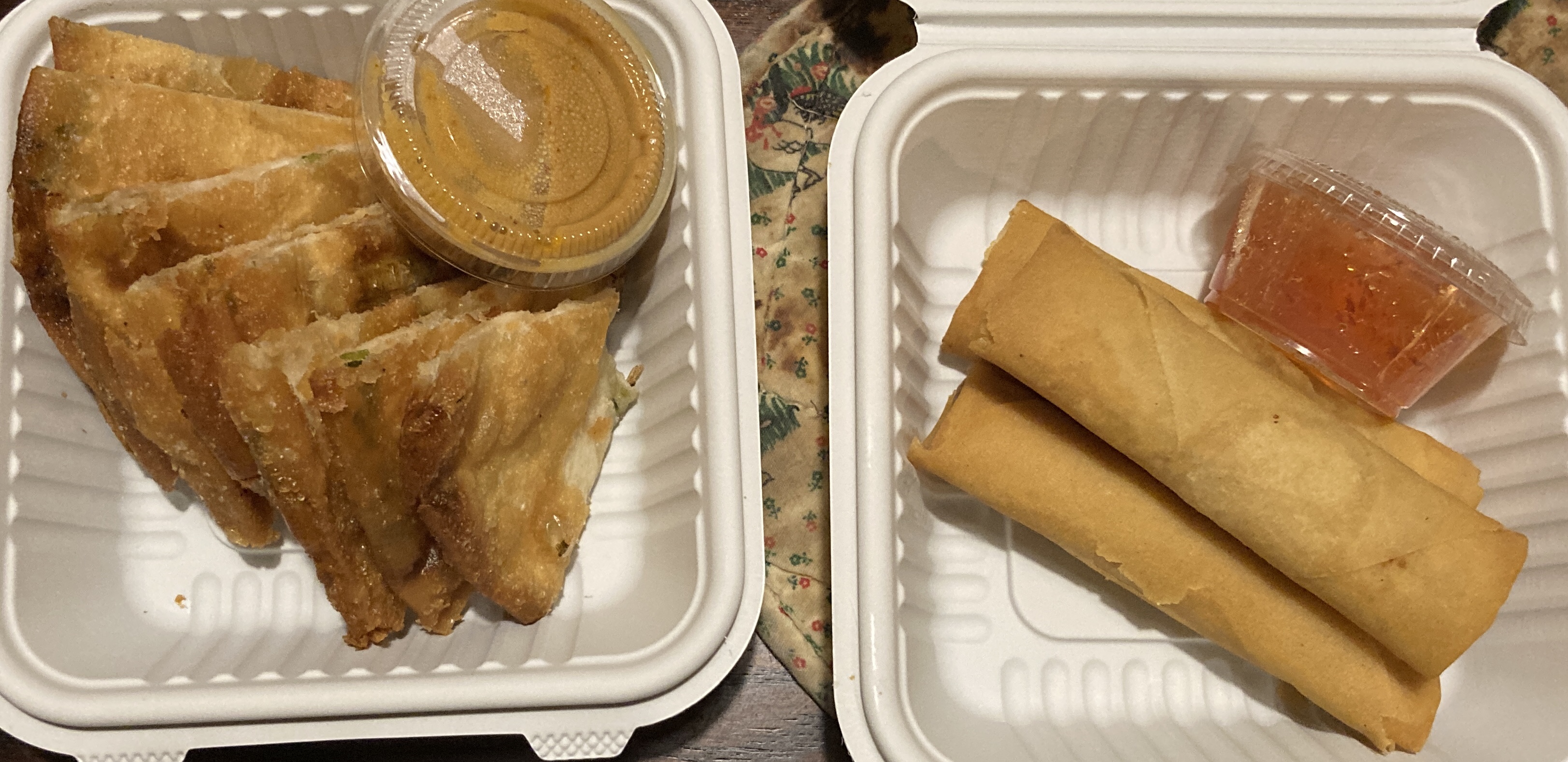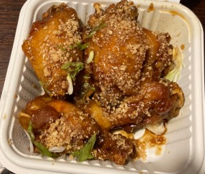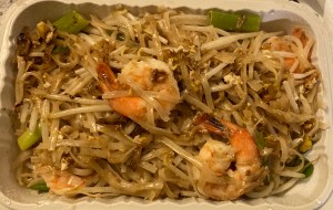Barbara and I had a yummy take-out dinner last night from the new Thai restaurant in Fields Corner, Just Thai: chicken wings with ginger glaze, ground peanuts, and scallion; spring rolls; scallion pancakes; Tom Yum soup; shrimp pad thai; and broccoli in oyster sauce with pork, carrots, and onions. Plenty of leftovers! We’ll be back!