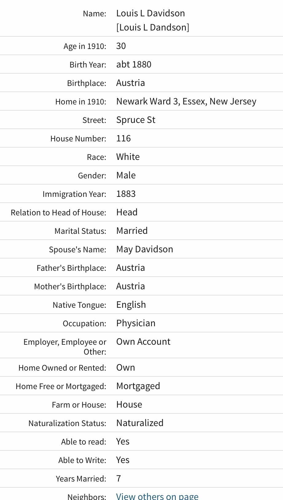 It may be relevant that my paternal grandmother, May Tannenbaum, as well as both of Louis’s parents, are also all listed as being born in Austria.