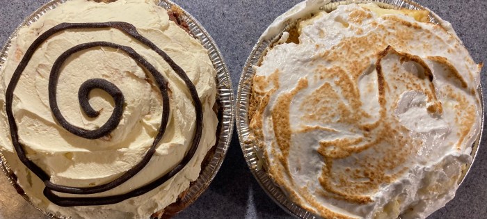 But back to the subject at hand: Pi Day in the Boston area. We will be observing the occasion tonight with a couple of ice-cream pies from the New City Microcreamery in Central Square, Cambridge: a chocolate cream pie and a key lime pie. As a public service I taste-tested both of them last night (after taking this photo) and found both of them delicious.