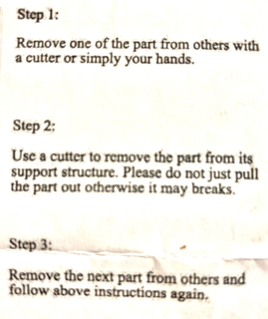But yesterday the mail carrier rang our bell at a ridiculous hour—7:00 PM for mail delivery!—and handed us this small kit. Below are the instructions in their entirety (no photos, no drawings, no indication what I am building). Can you figure out what they are trying to say?
