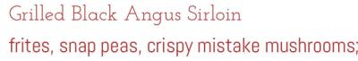 This has been fixed in the printed version (mistake ➞ maitake). But the reason it’s strange is that it’s far easier to fix an online menu than a printed one, so why is it that the printed one is the one that has been corrected? Inquiring minds want to know.