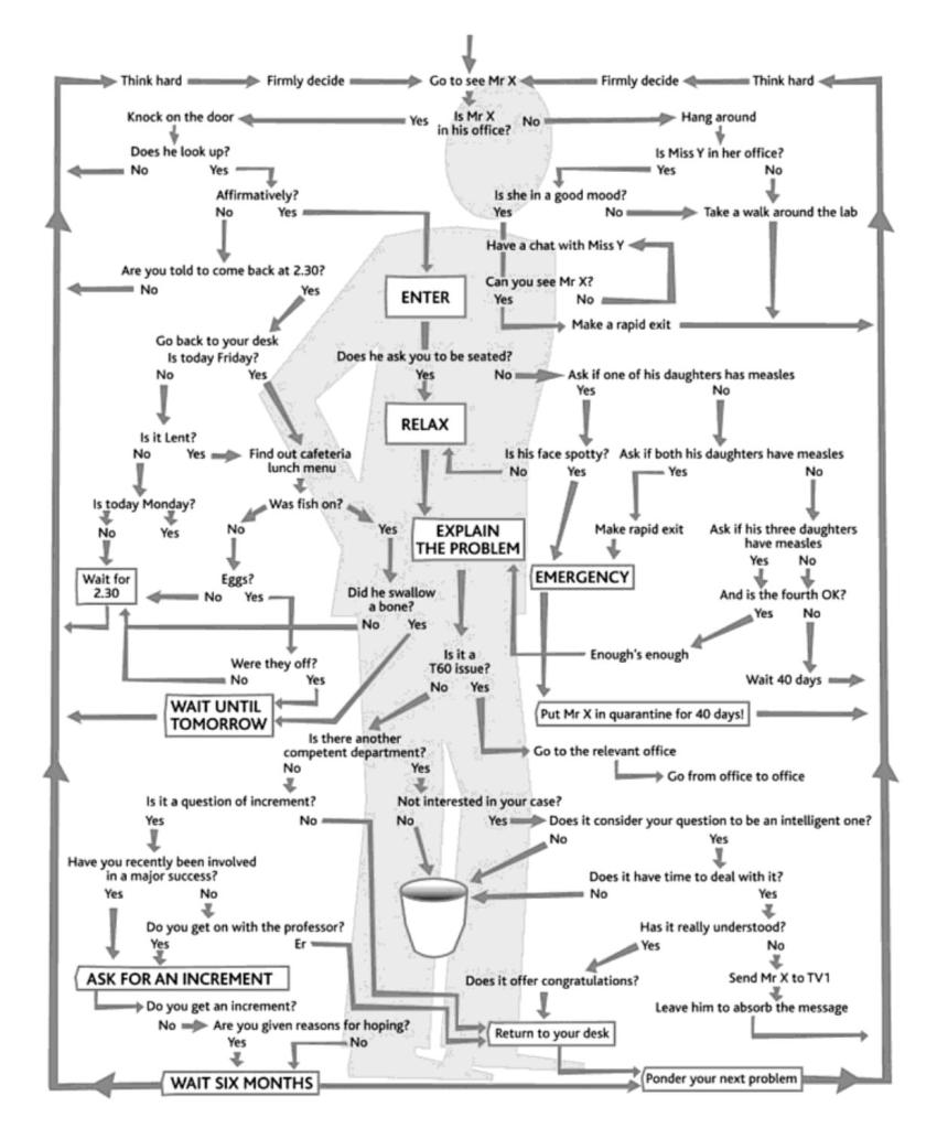 OK, OK, so it’s really a novella, but let’s not quibble. What you really want to know is whether it’s worth reading the book after this unpromising description. The answer is… an unequivocal maybe. Perhaps it would help you decide if you look at the flowchart inside the front and back covers. Yes, of course the novel comes with a flowchart, as good novels do: