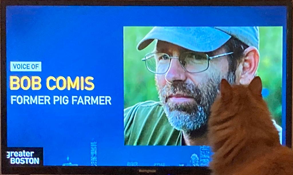 William had to get really, really close to the TV so that he could enjoy watching the promo of The Last Pig: