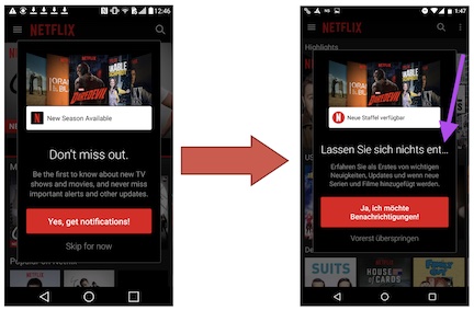 The important point is that the layout has plenty of room for the pithy “Don’t miss out” but not enough room for “Lassen Sie nichts entgehen,” which means the same thing in German.