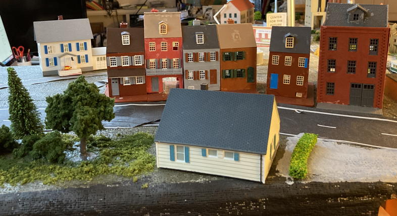 But “I’ve been workin’ on the railroad!” There has been one good thing about the pandemic: I have had plenty of time to work on the model. At this point I’m only 42% done—probably an overestimate, but it’s such a good number—so I’ll share with you some photos of four selected neighborhoods.