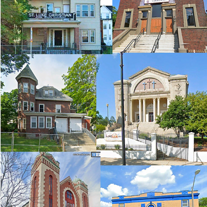The large majority of Calish’s illustrations were photos he recently took himself, including the six in the montage. You can get an idea of the variety of the buildings, ranging from repurposed private houses to magnificent edifices. The structure of the Zoom-based talk was to proceed through the list of all the still-extant buildings (25 or so), more or less north-to-south, discussing the name of the congregation and its history from founding to today. Near the end was a short but interesting series of photos of and observations about some famous members of these congregations, such as the two Leonards: Bernstein and Nimoy. (Unfortunately Calish mixed up Star Trek and Star Wars, but he’s not the first to do that and won’t be the last.)