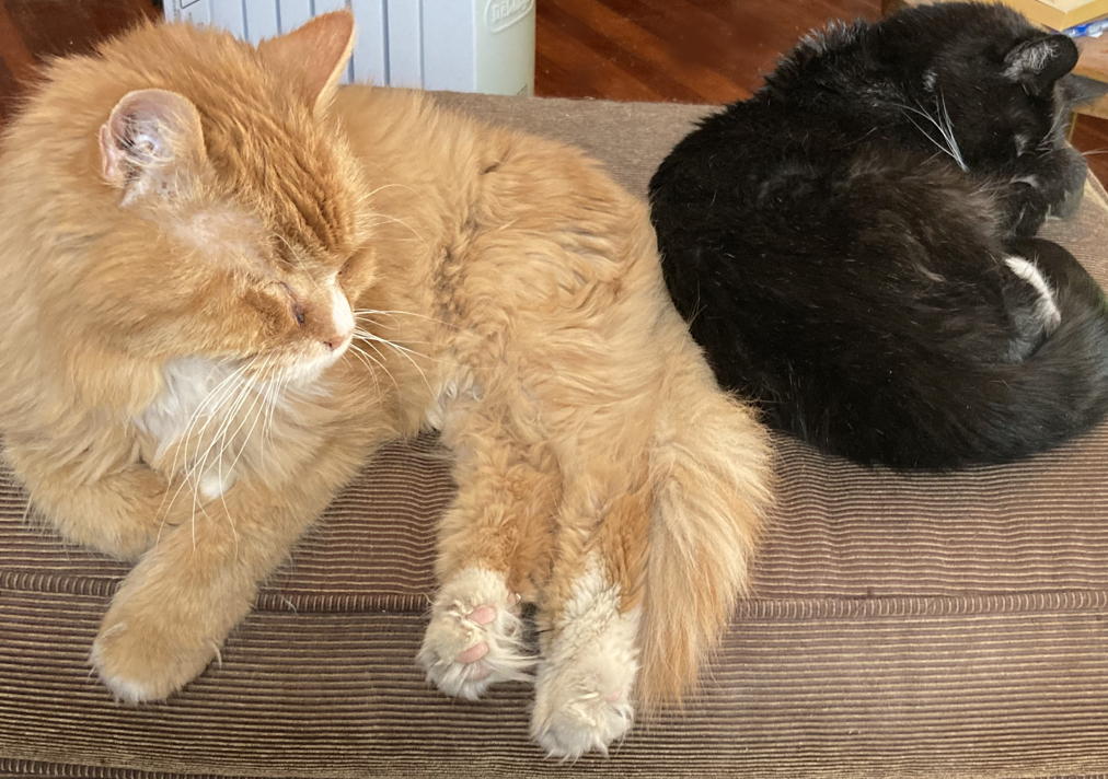 Apparently there’s plenty of room for both boy cats on the ottoman: